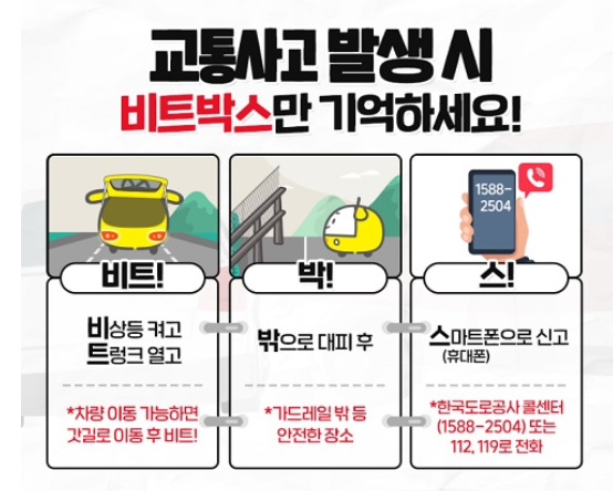 신속하게 신고하자(1. 경찰 / 2. 보험회사 / 3. 한국도로공사)