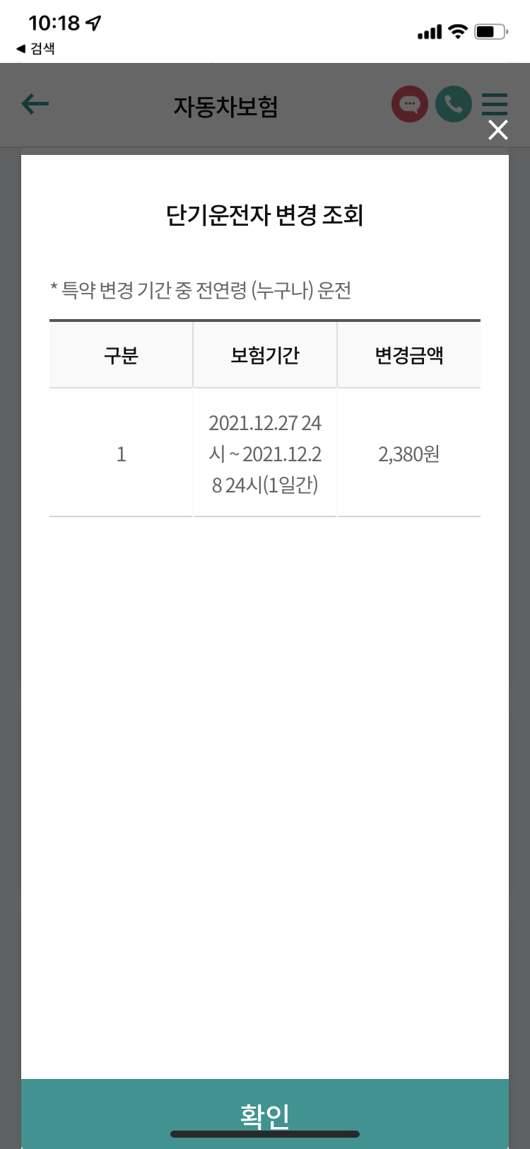 공짜로 하루 특약 가입했네요.