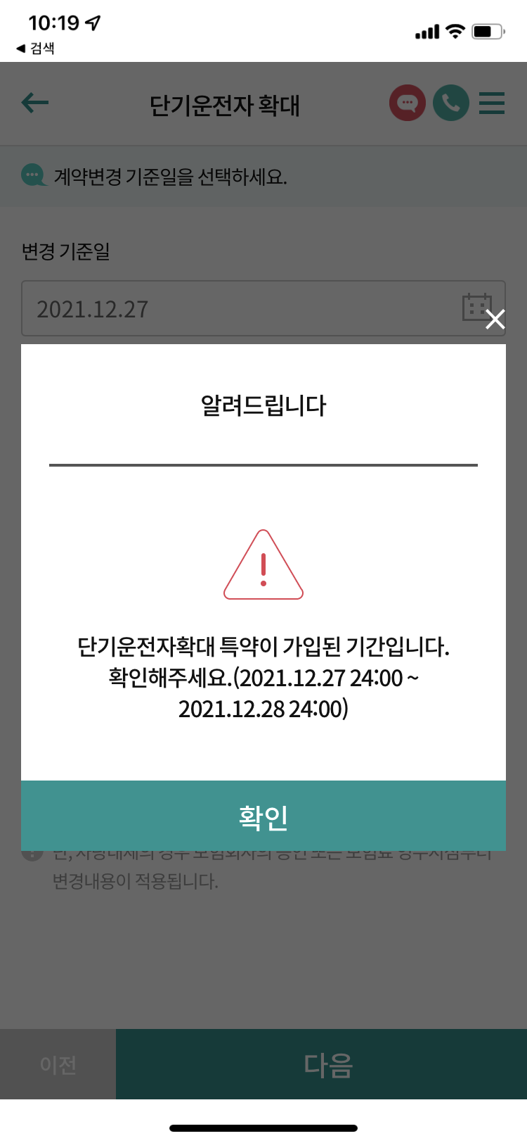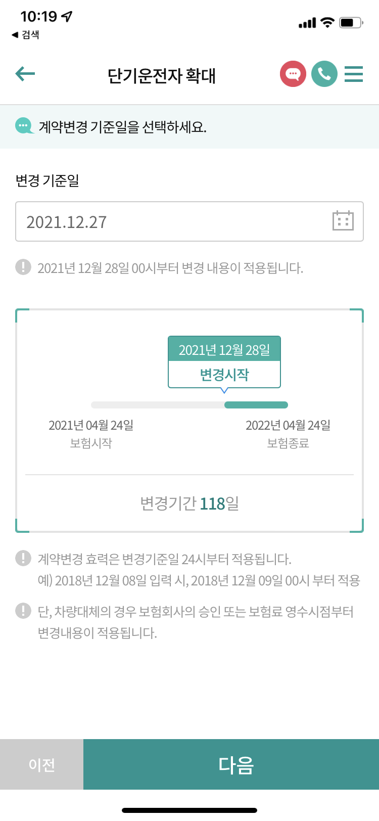 <단기 운전자 확대>라는 메뉴가 보이시죠?