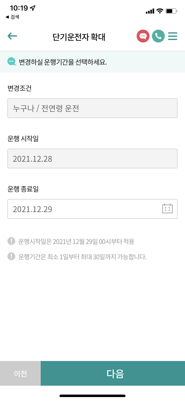 운전예정일 하루 전 날에