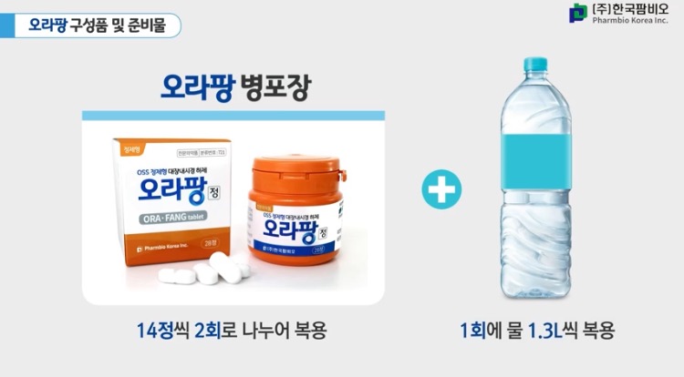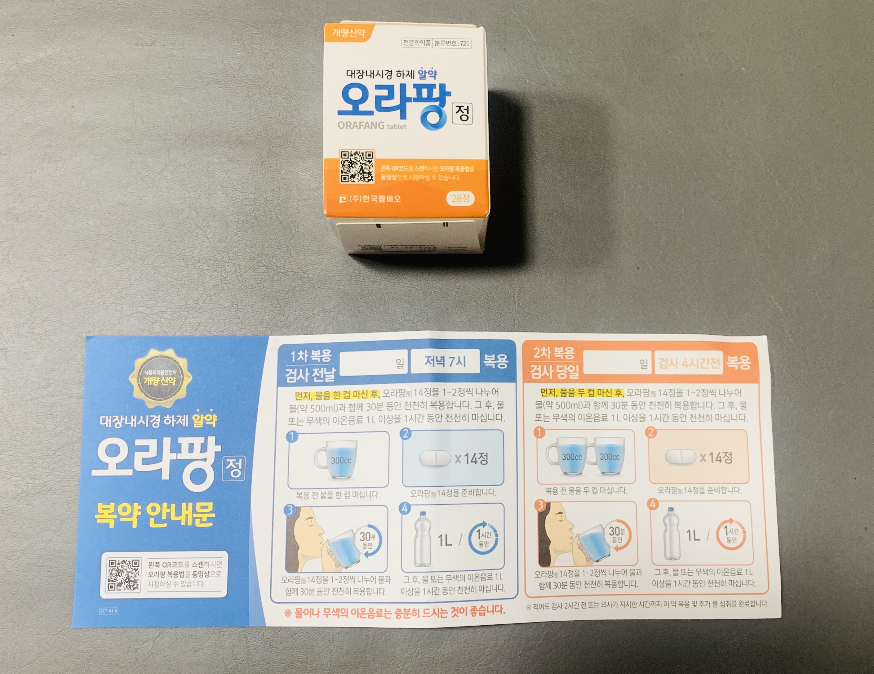 검사 당일 4시간 전에 2차(14알) 복용하면 됩니다.