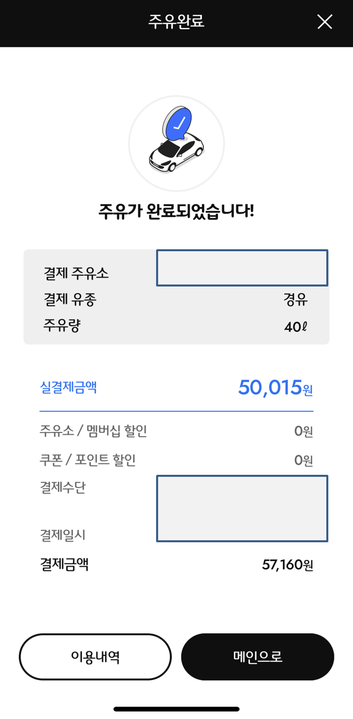저는 "셀프주유소"라 차량번호 입력으로 대신했습니다.