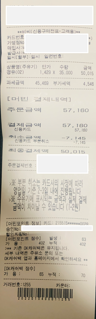 이런 주유 바코드를 발급 했으나,