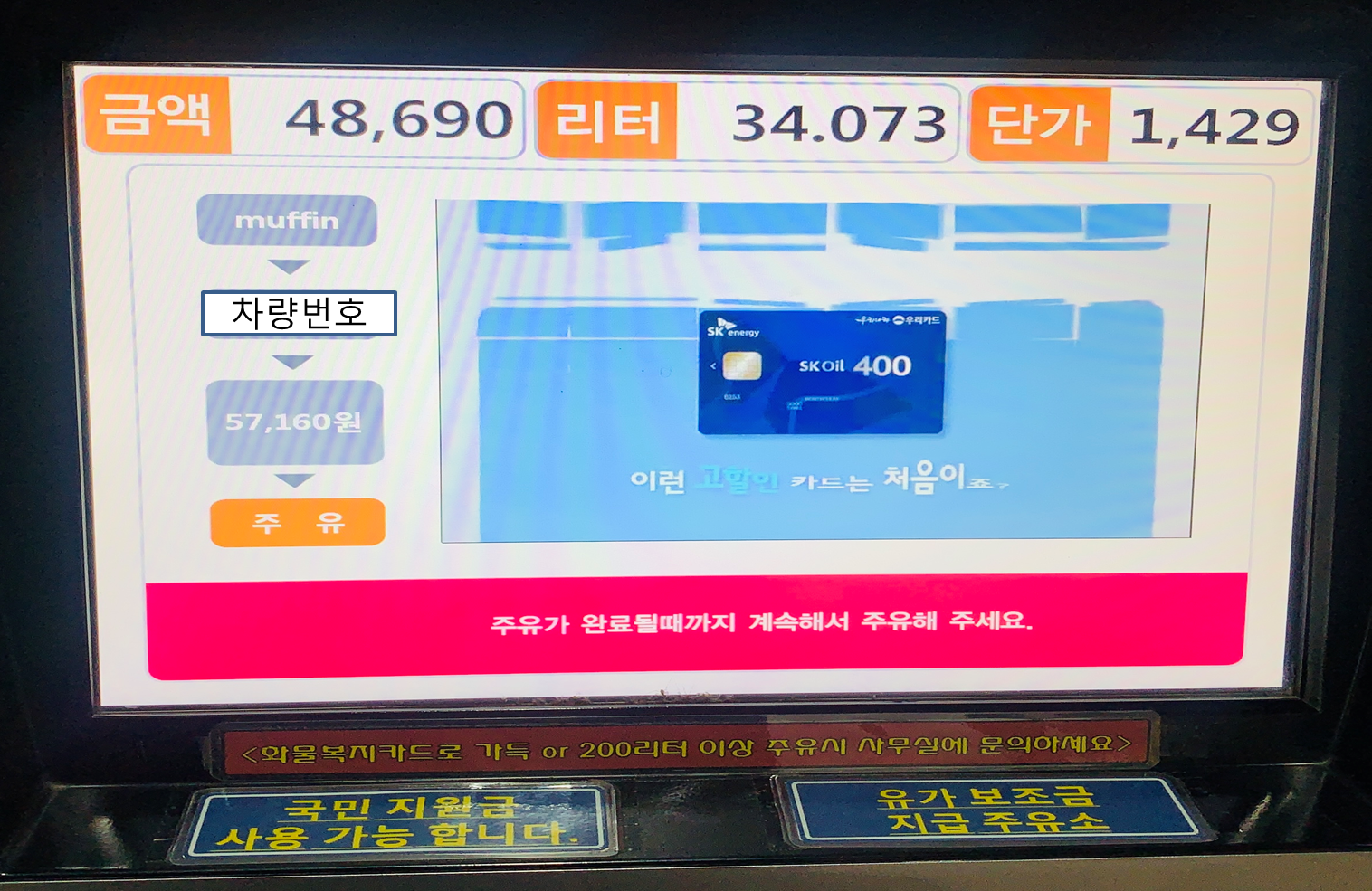 SK주유소 <Muffin>이라는 표지판이 있으면 가능한 주유소입니다.