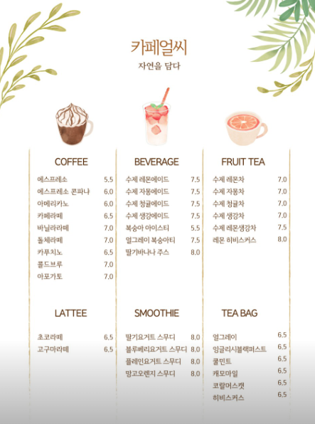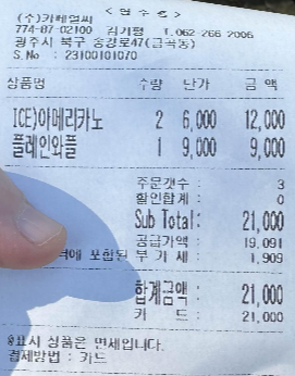 저희는 일단 아이스 아메리카노 2잔(6천 원 *2)과