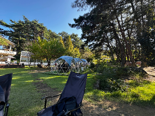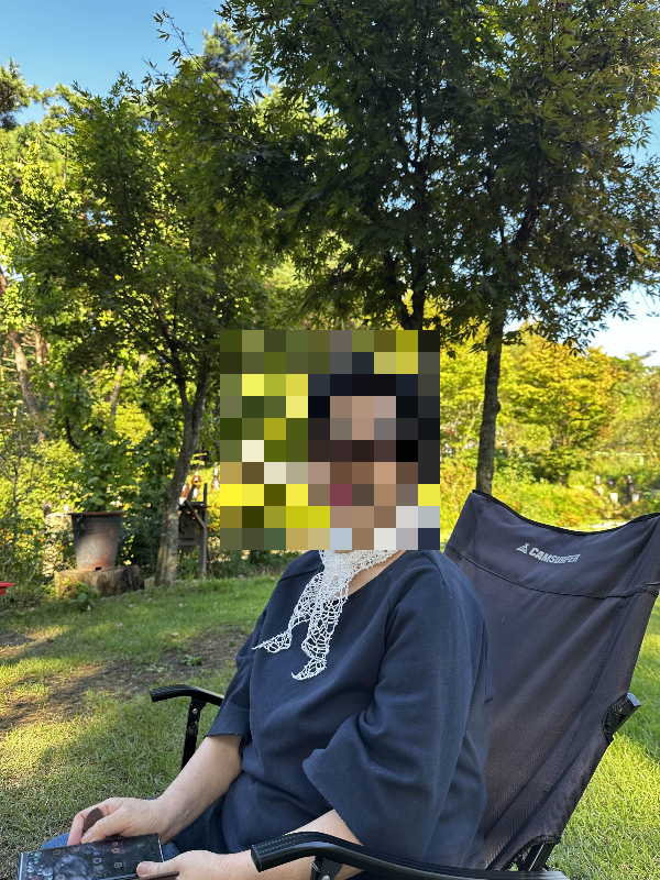 캠핑 의자가 있는 곳으로 자릴 잡았습니다.