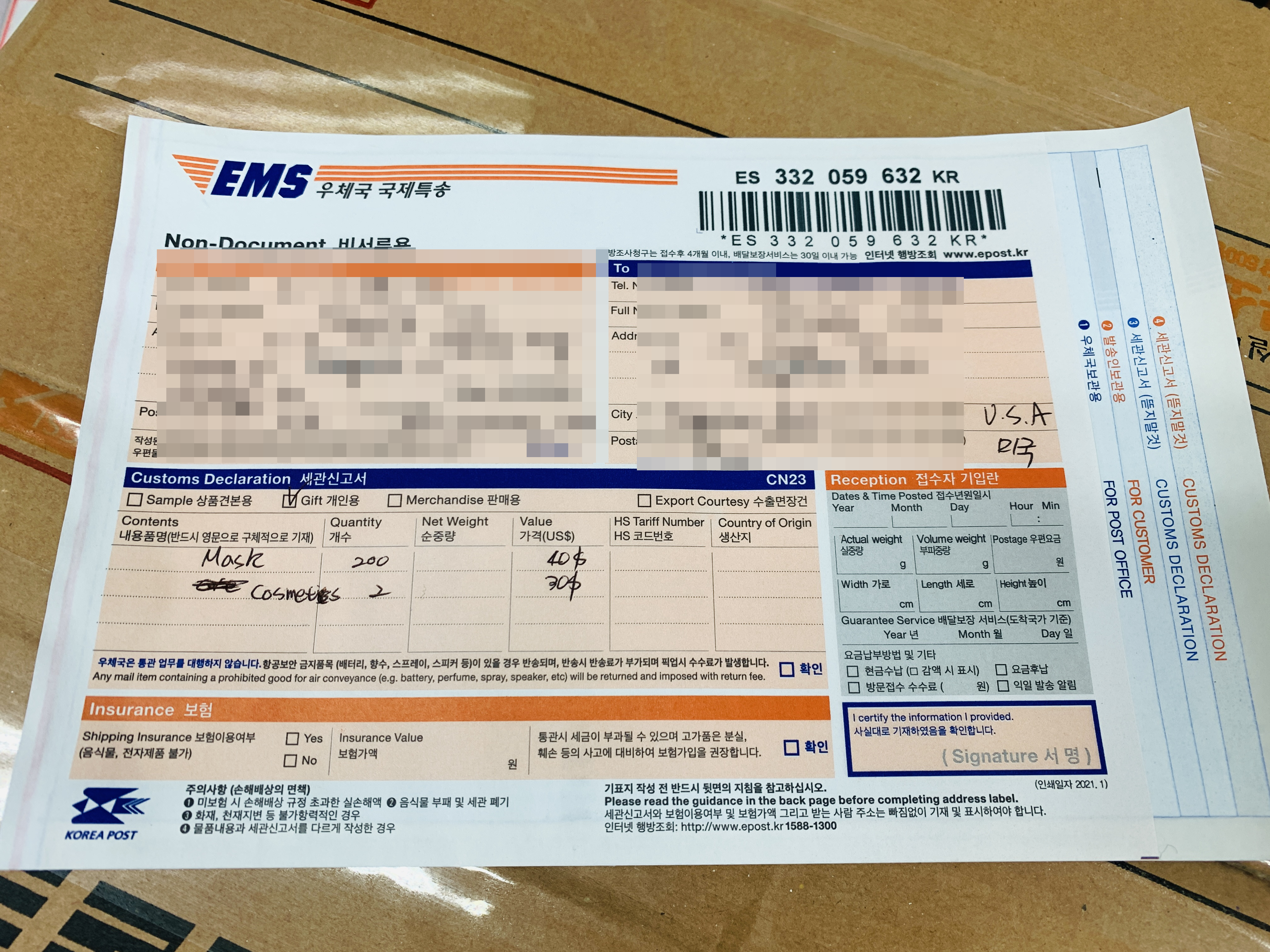 오늘은 미국에 있는 가족에게 마스크를 보낸 후기를 정리해볼까 합니다.