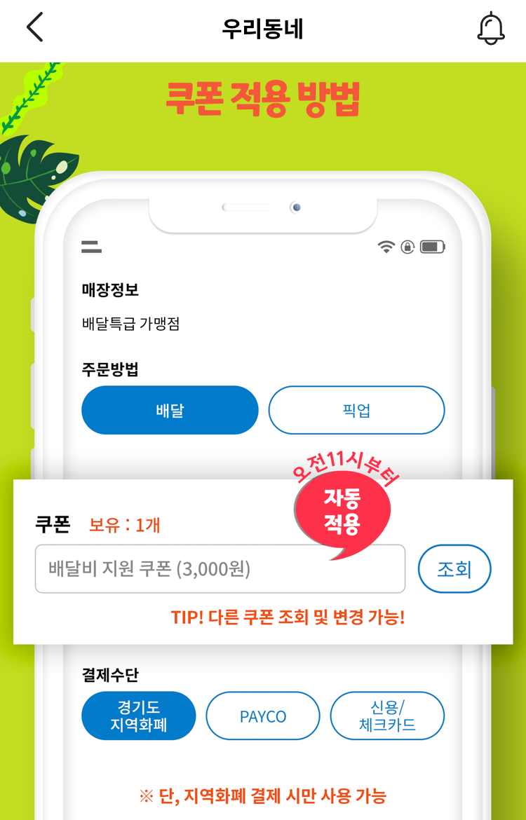18천 원 이상 주문이면서 지역화폐로 결제를 해야