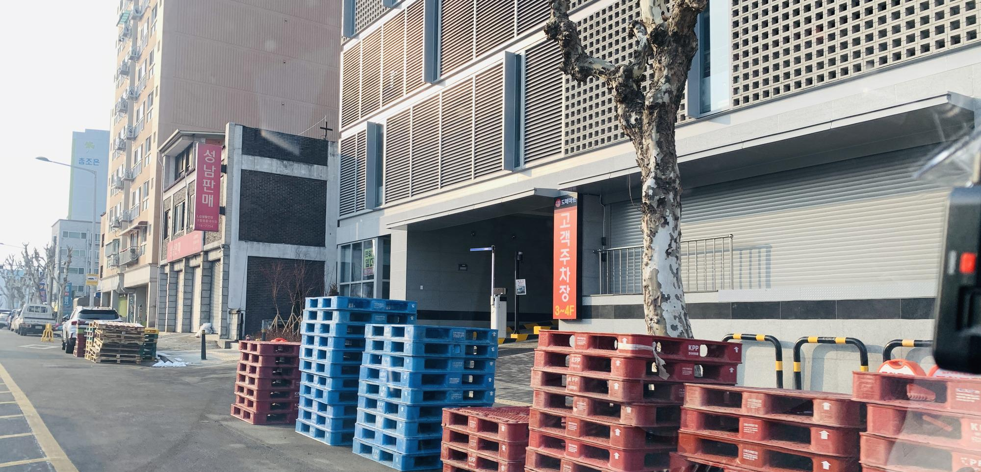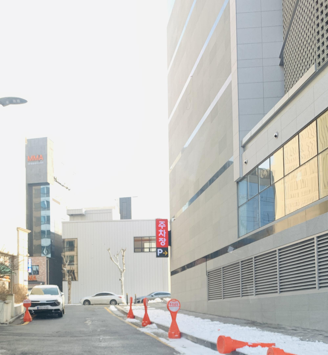 주차장은 건물을 끼고 오른쪽으로 돌아가면