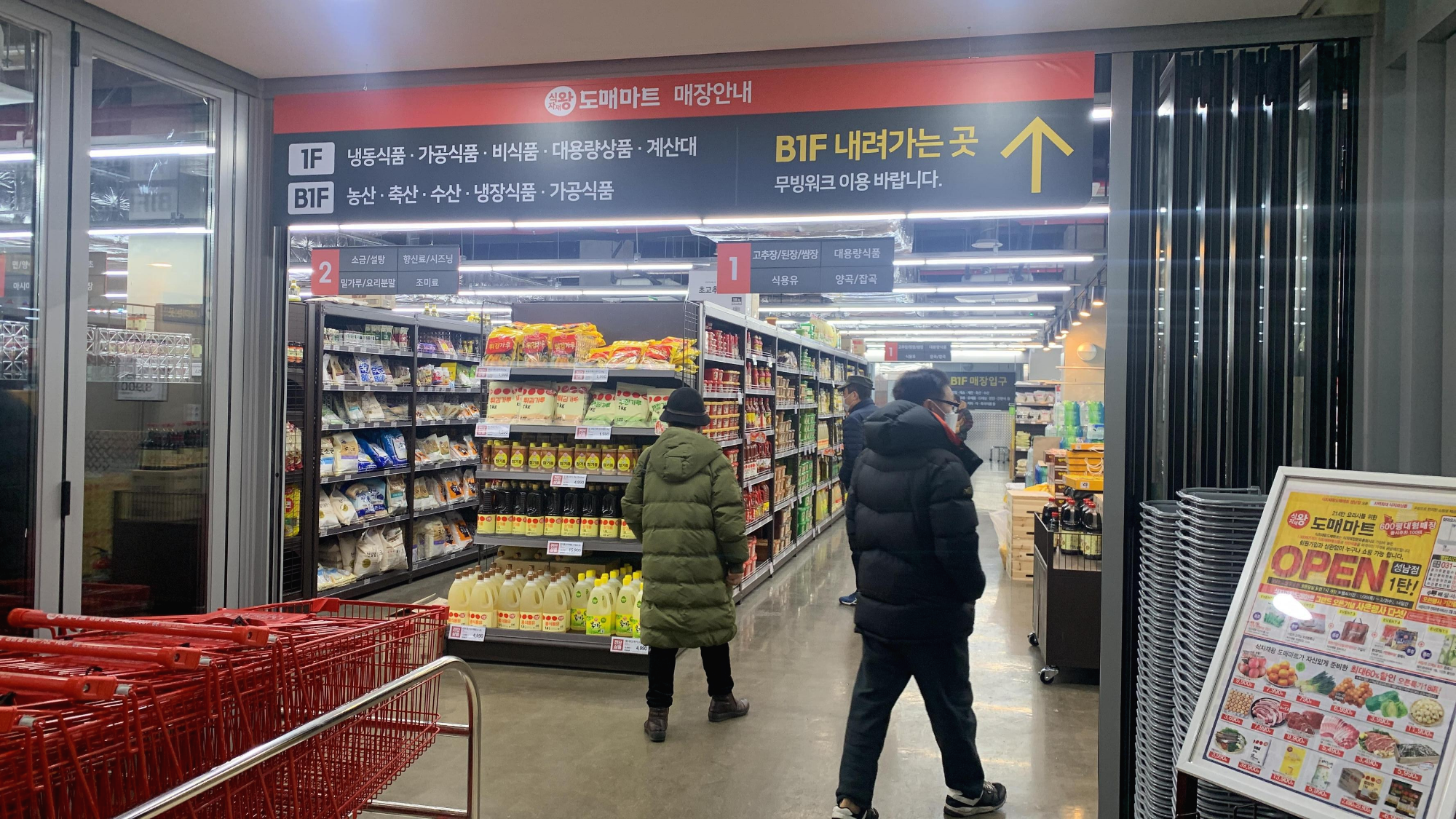 1층 : 냉동식품, 가공식품, 비식품, 대용량상품, 계산대
