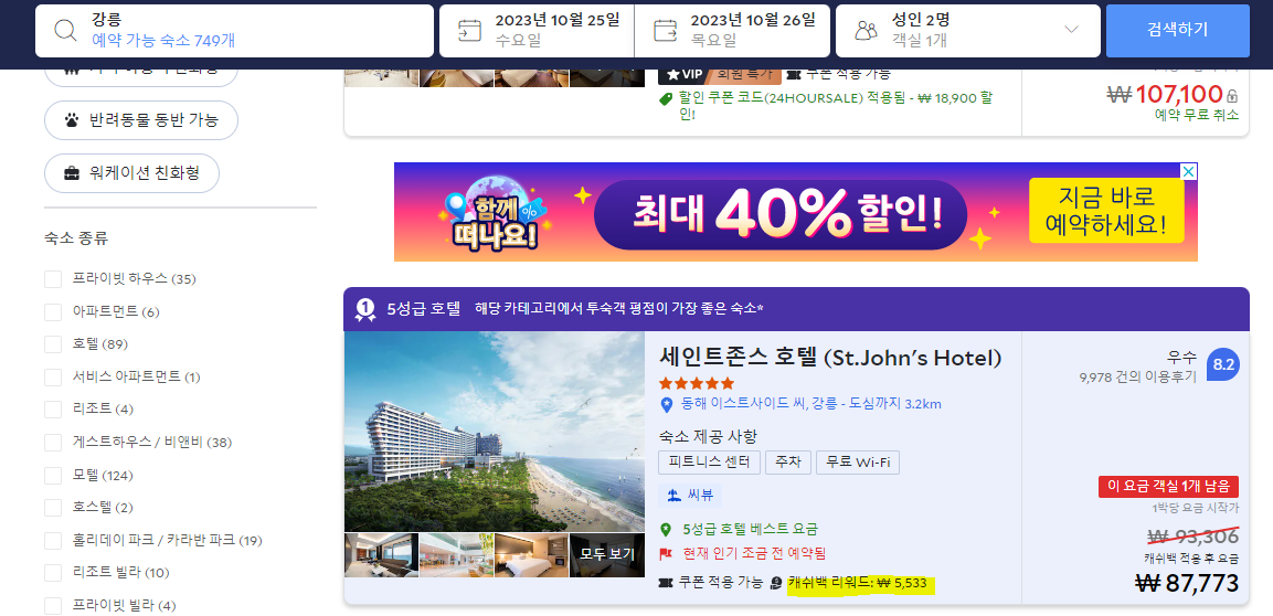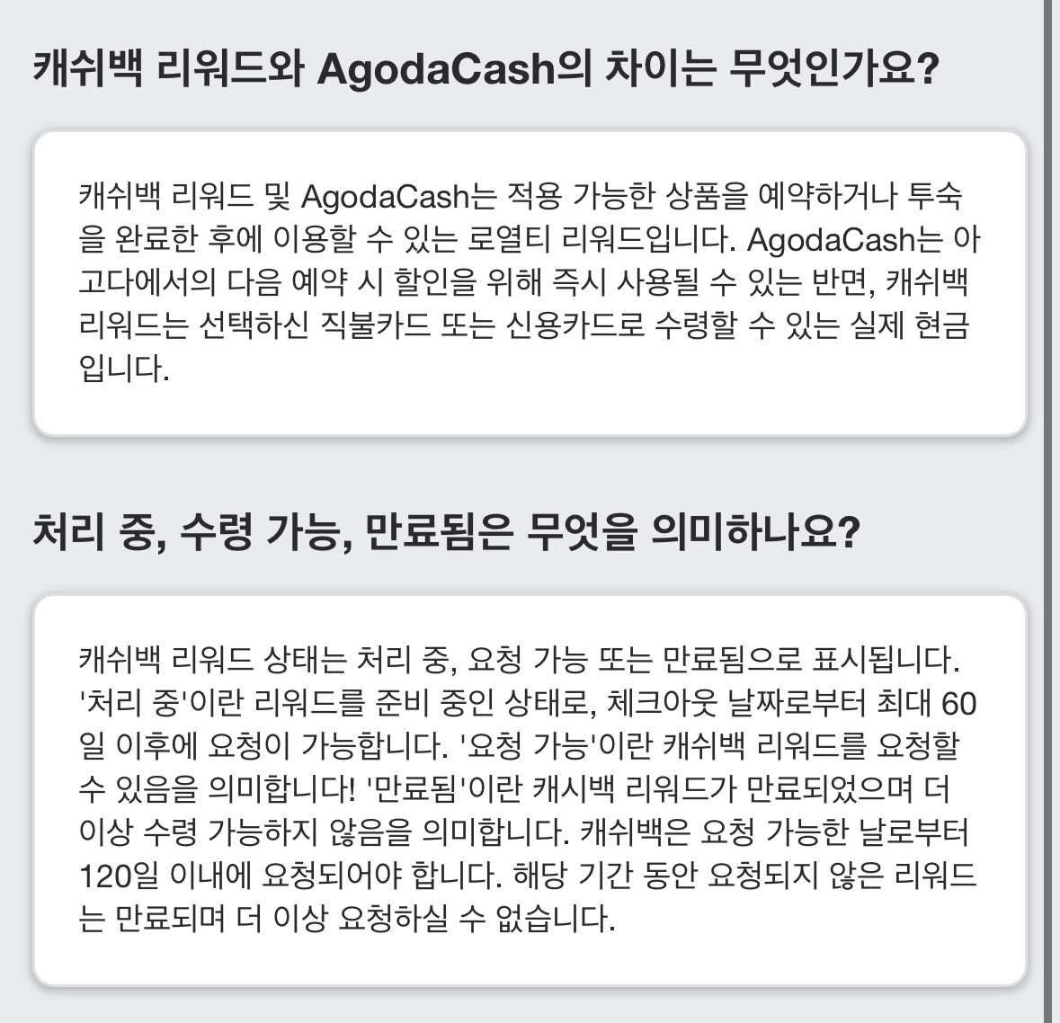 캐시백 리워드 VS. 아고다 캐시
