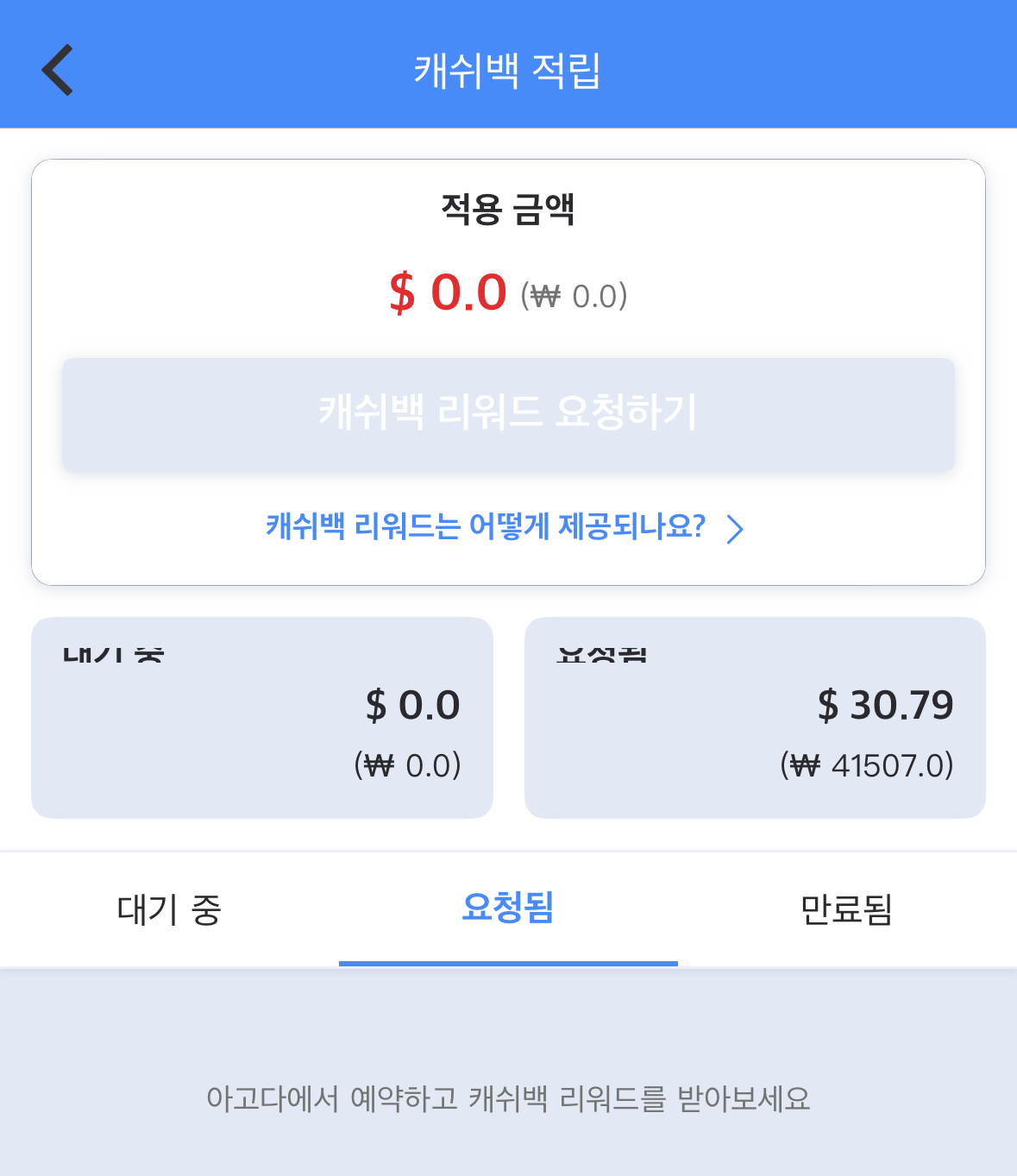 아고다 캐시는 다음 예약 때