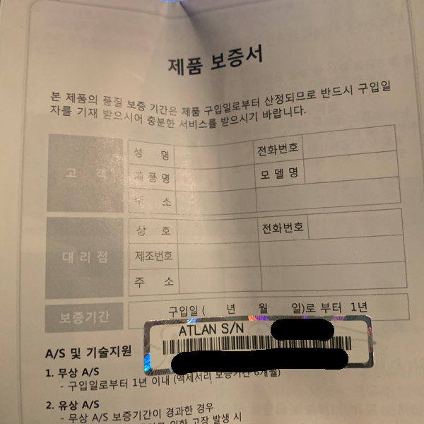 차 안을 뒤져보다 보니 "제품 보증서"를 발견했습니다.