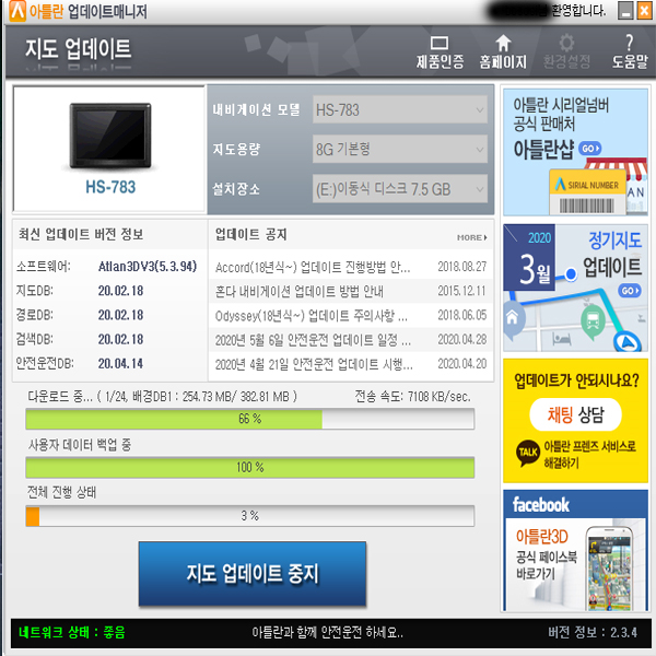 지도업데이트를 눌렀더니 용량이 어마어마 합니다.