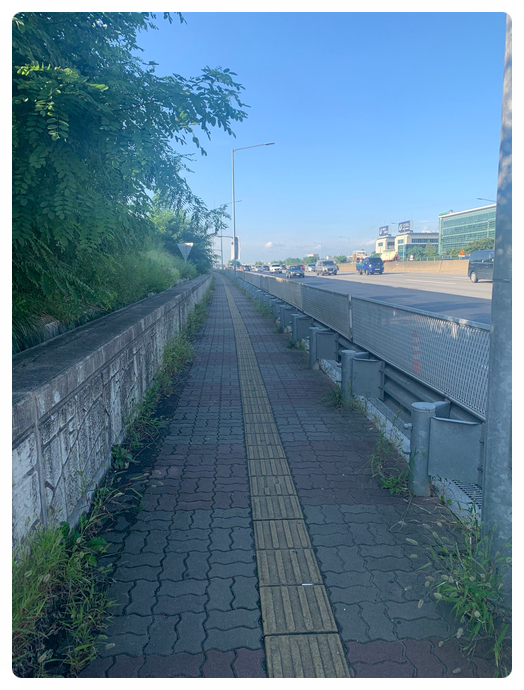 . 1탄에 이어 본격적으로 작업을 시작합니다. 다시 봐도 아찔한 이곳은, 네 맞습니다. 고속도로 옆 인도입니다. 높이만 봐도 아시겠지만, 쉽게 넘어갈 수 없는 높이입니다. 그리고 문제는 고속도