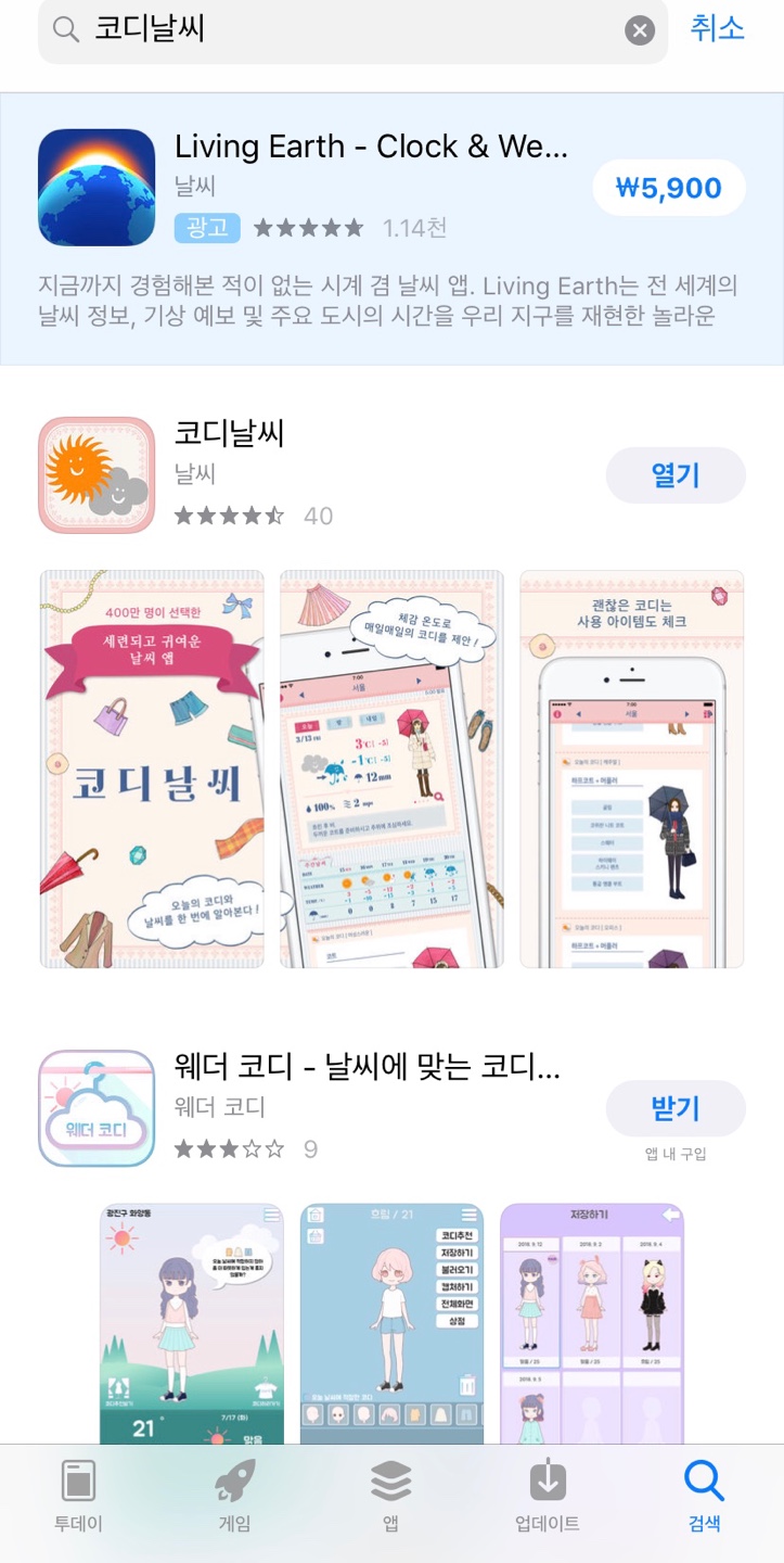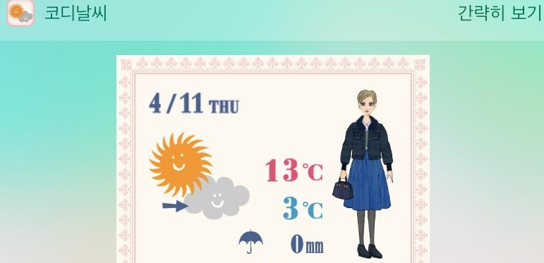 "코디날씨"를 검색해서 다운 받으면 됩니다.