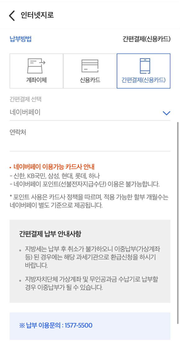- 지방세입계좌 납부