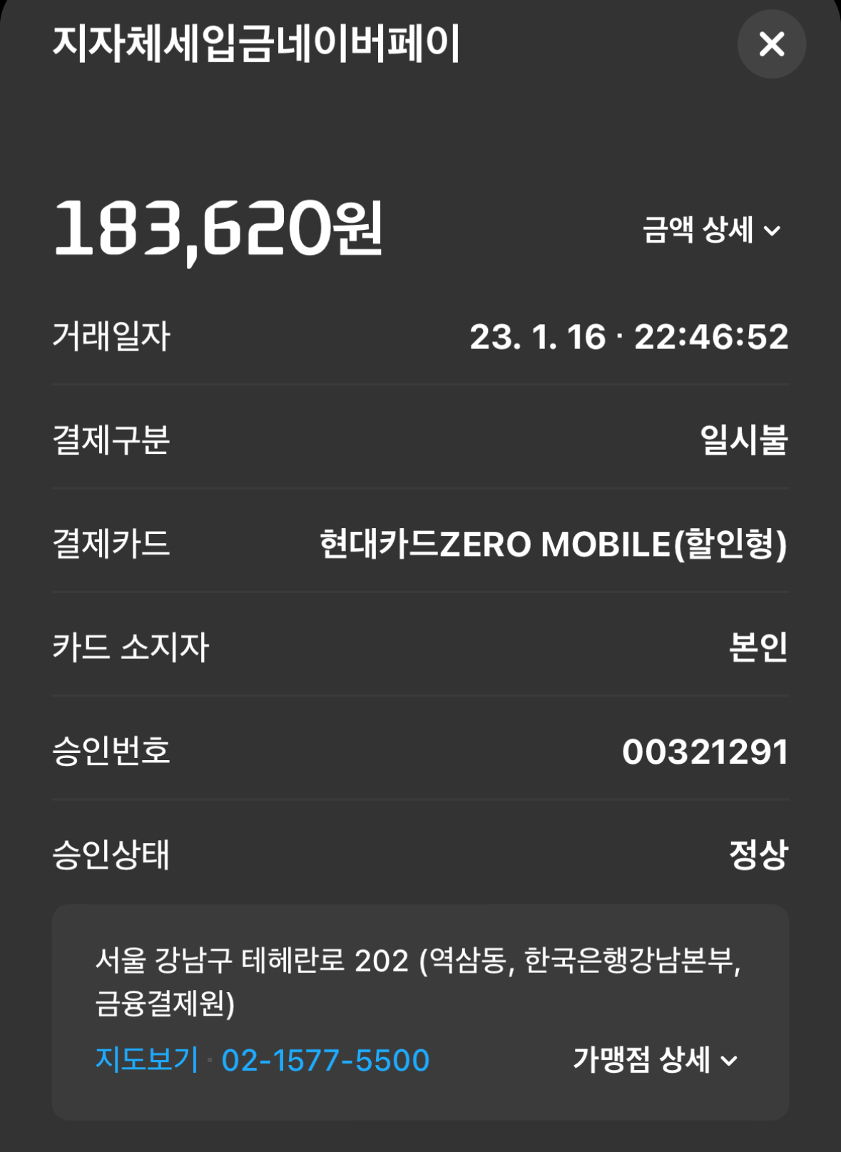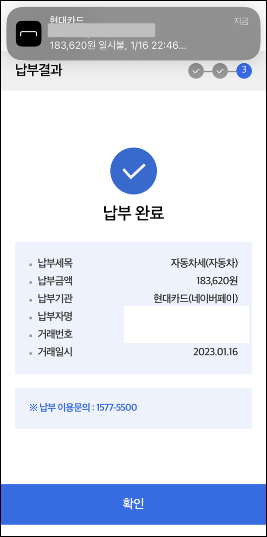 납부 버튼을 눌렀더니