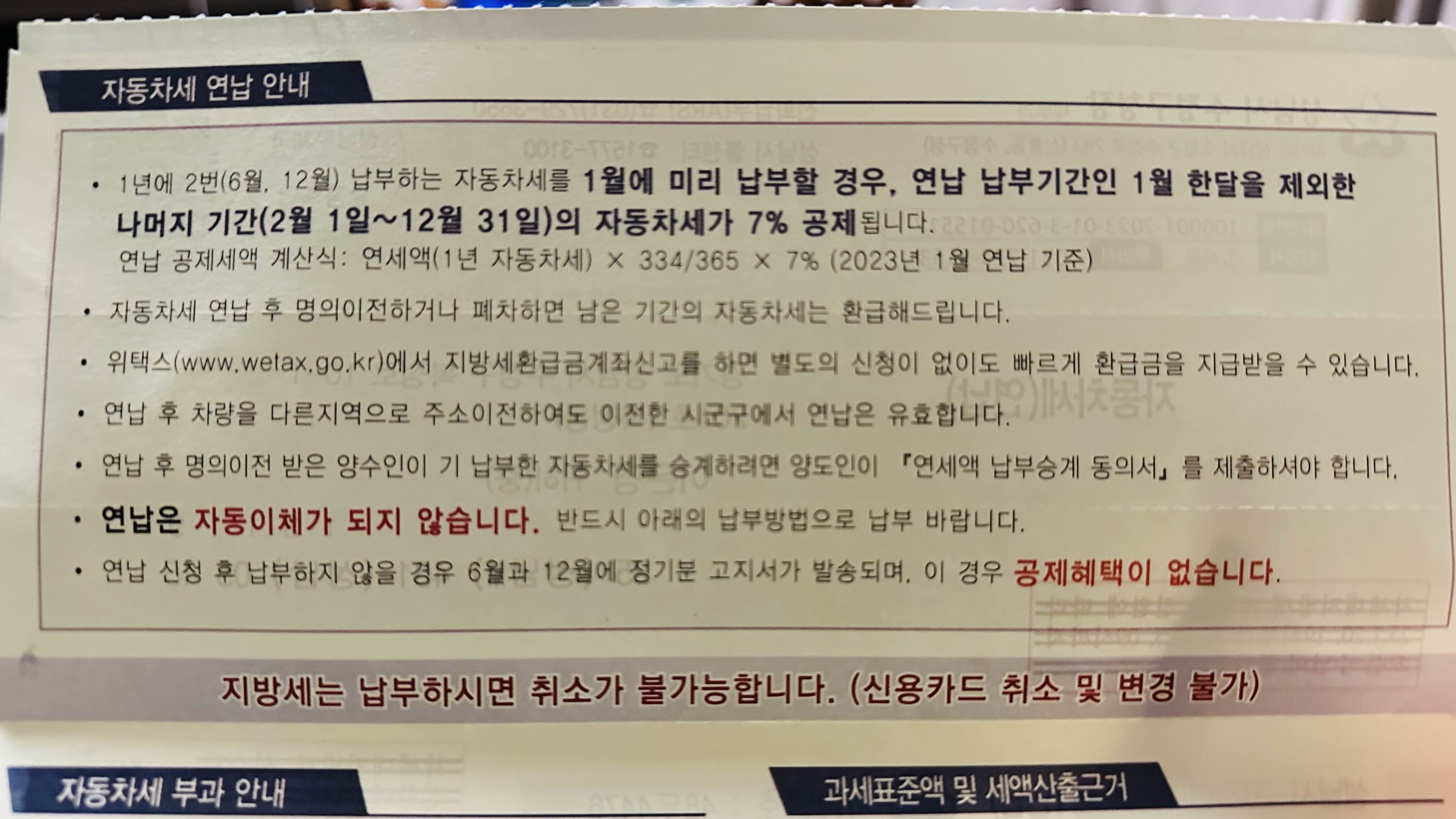 자동차세가 7% 공제됩니다.