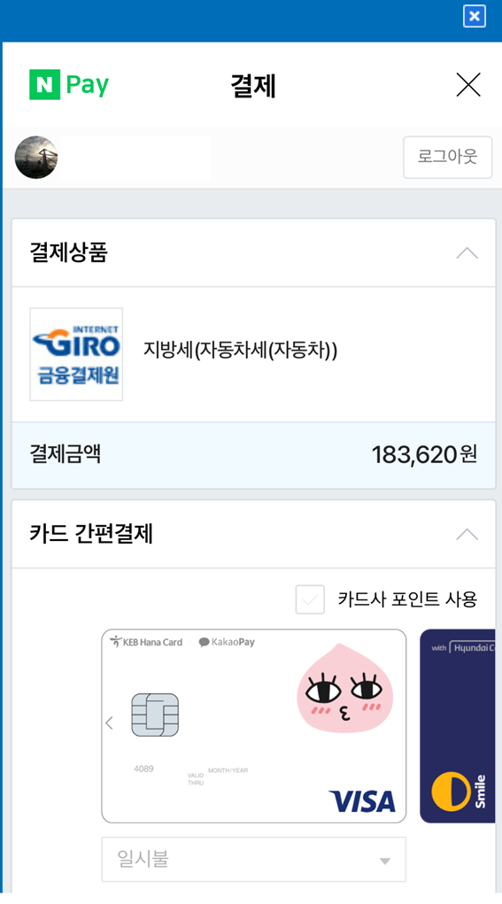 "네이버페이"로 결제했습니다.
