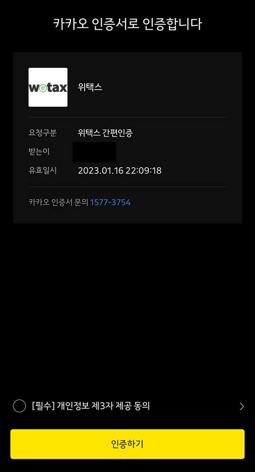 저는 카카오톡으로 인증으로