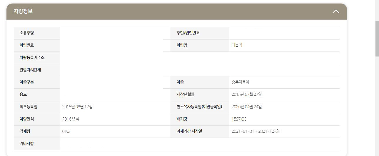 그럼 차량정보가 뜨게 되고,