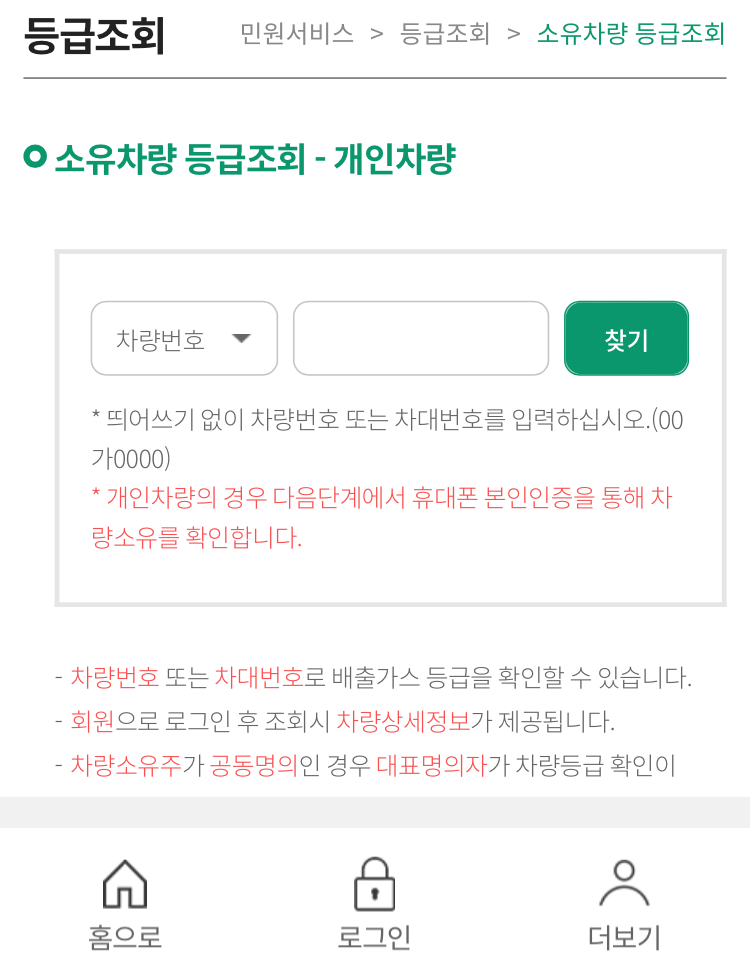 조회하면 자동차 배출가스 누리집을 클릭합니다.