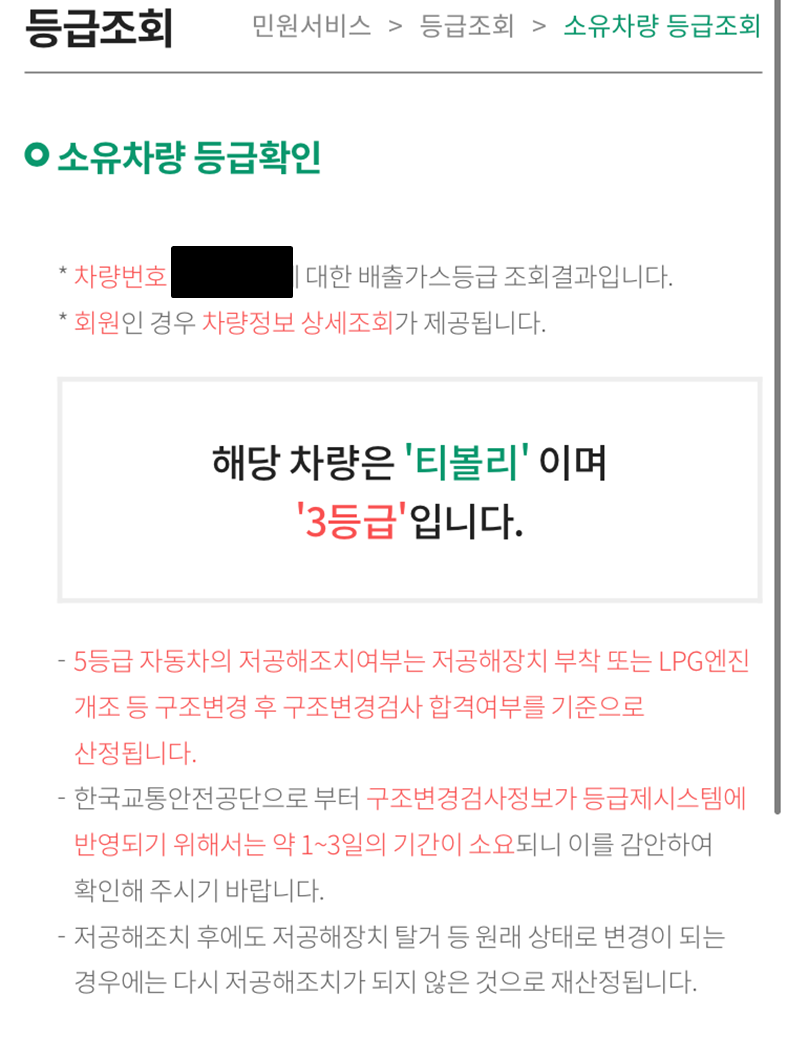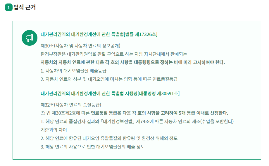 「자동차 배출가스 등급 산정방법에 관한 규정」에 따라