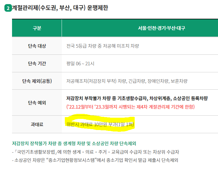 모든 차량을 유종/연식/오염물질의 배출 정도에 따라서