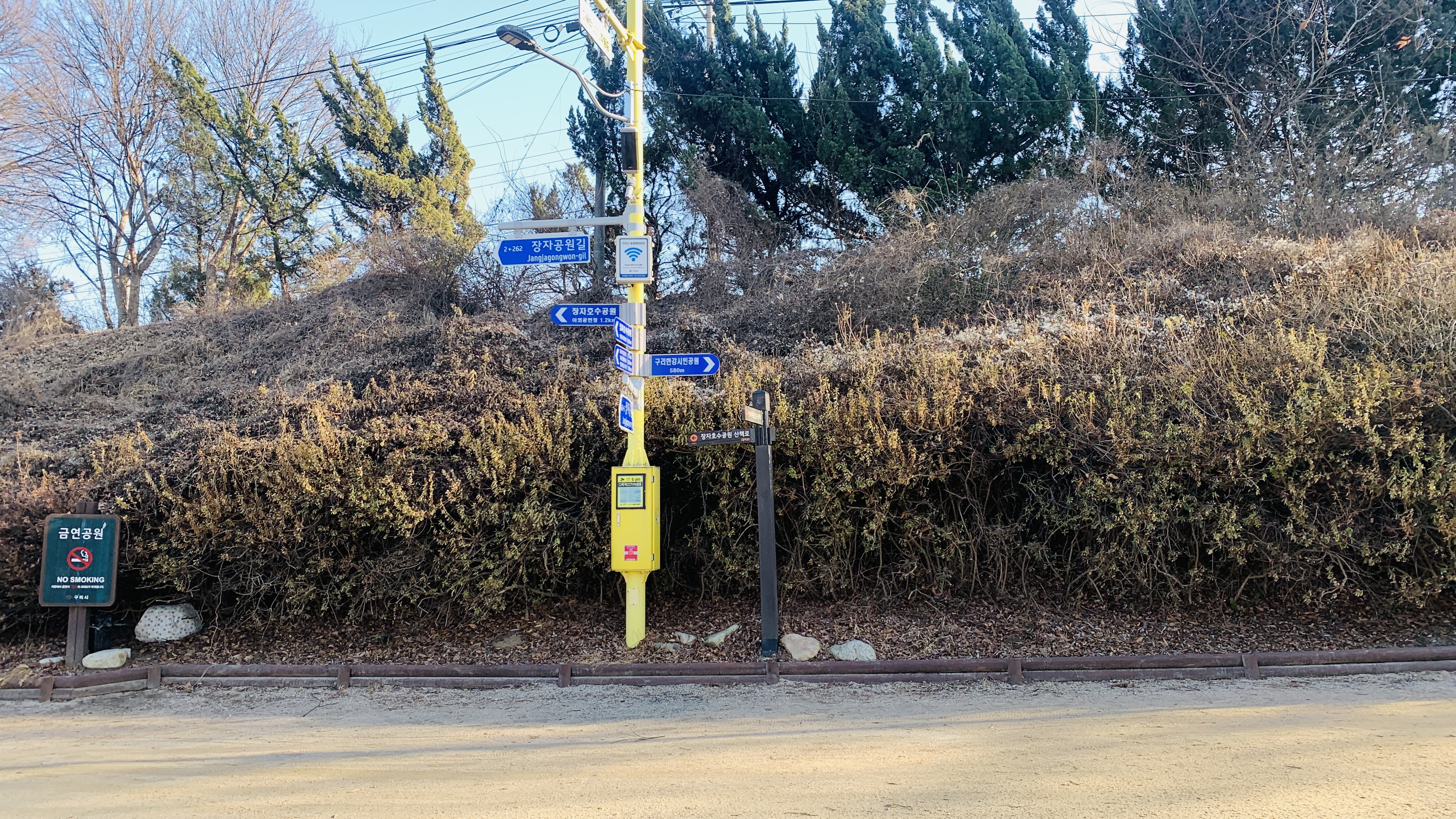 구리한강시민공원에서 사람들이 주차장 출입구에서 걸어가던 의문의 장소가
