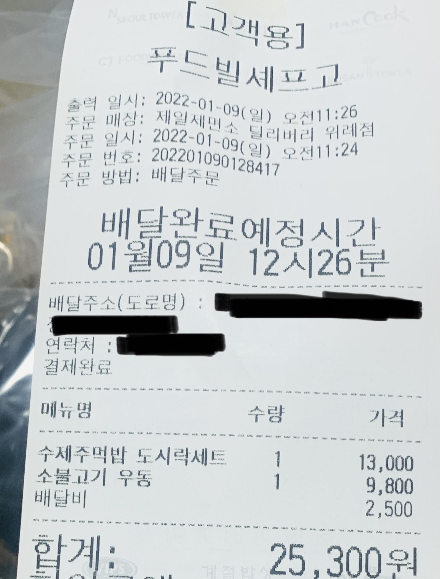 3. 배달비 : 2,500원