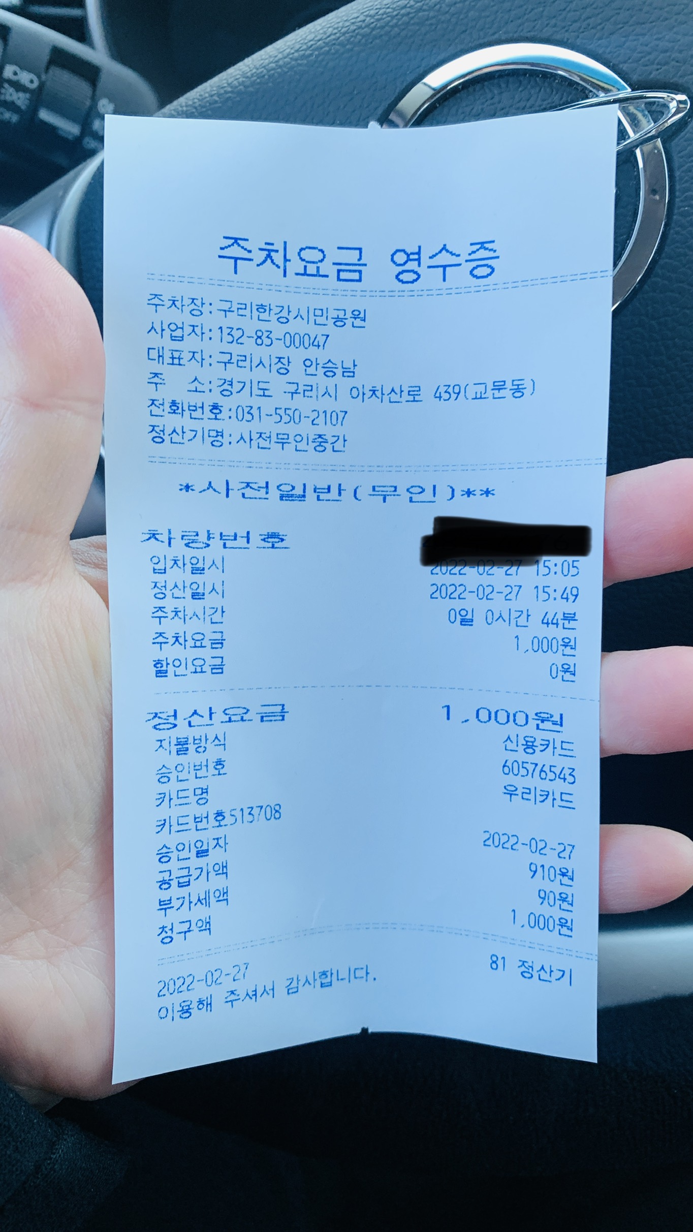주차 요금은 기계에서 미리 정산하고 가면 되는 시스템이었는데,
