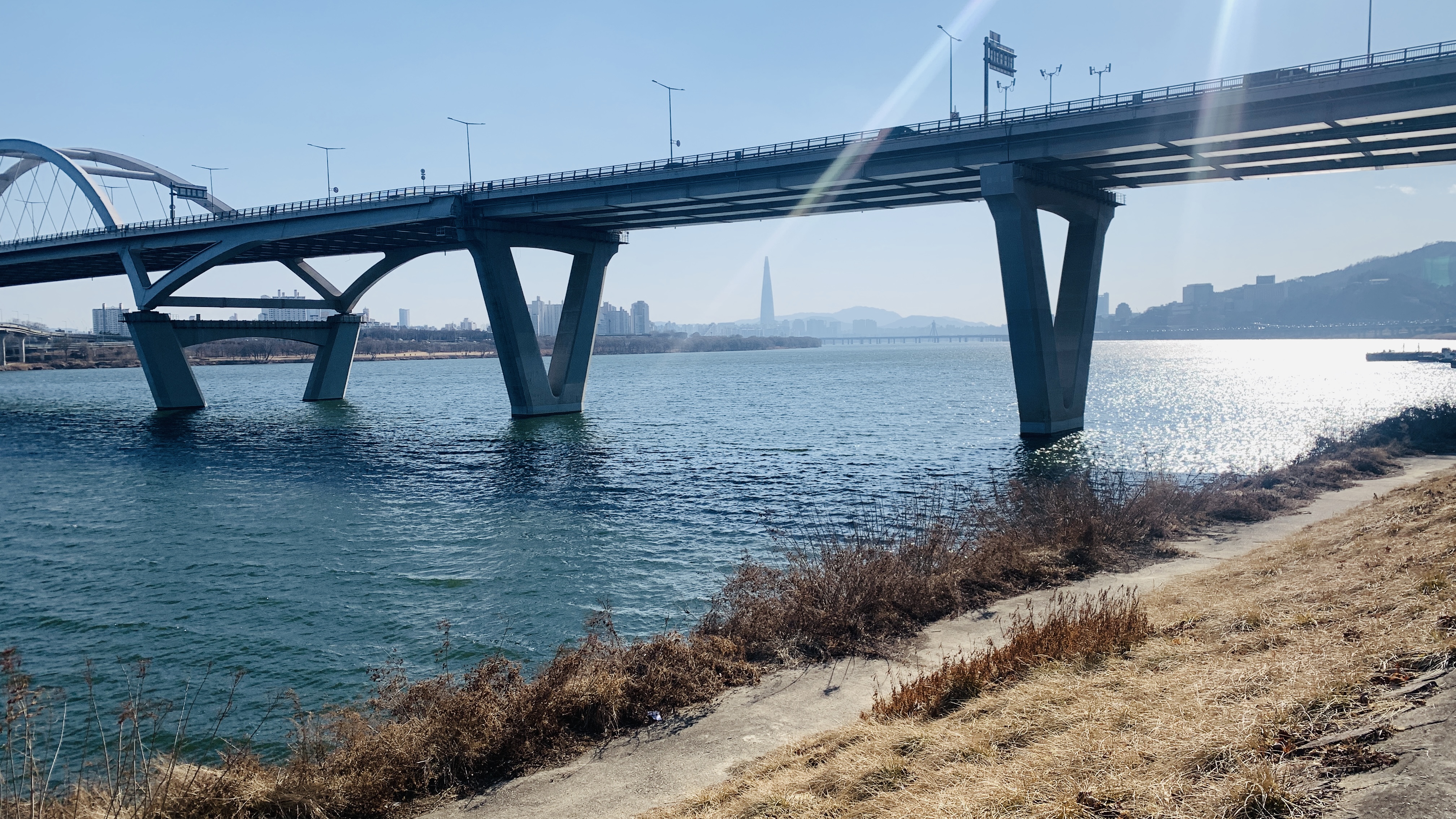 반대쪽으로 걷자 하니 저 멀리 롯데월드 타워가 보이더라고요.