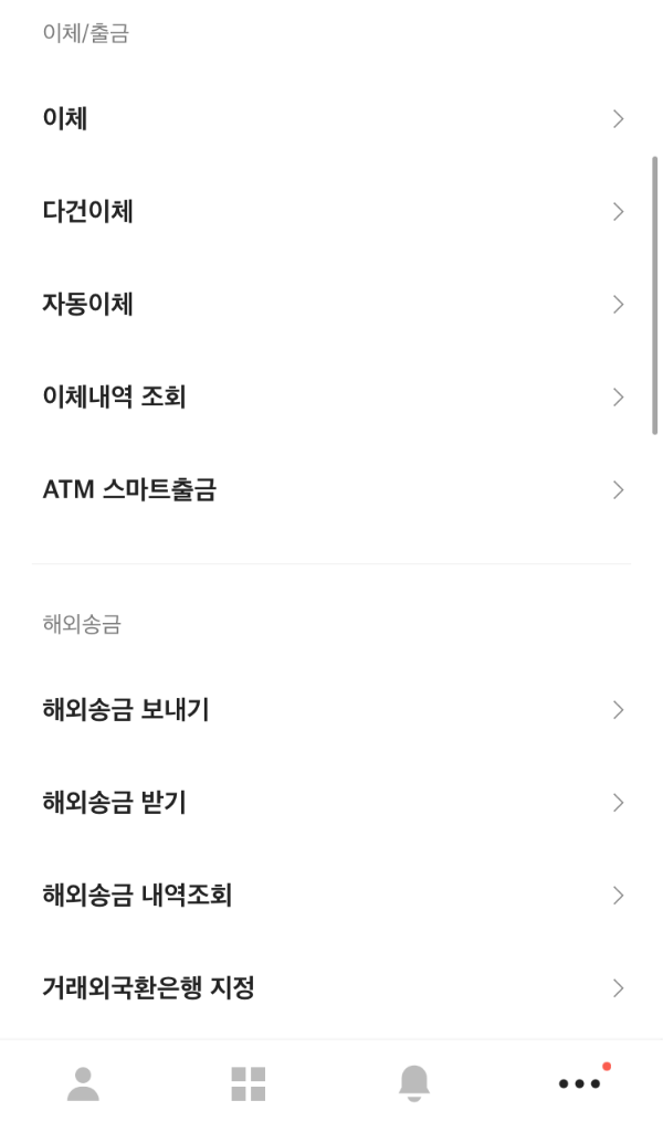 카카오뱅크를 열고 <이체/출금> 메뉴를 보니