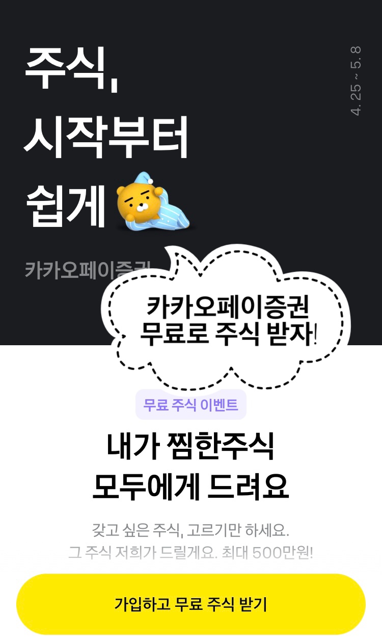 <카카오페이증권>을 가입하면 "무료 주식"을 준다는 것입니다.