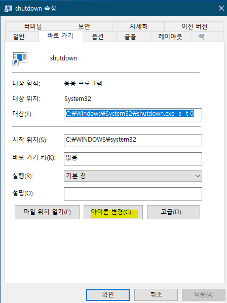 "아이콘 변경"을 눌러,