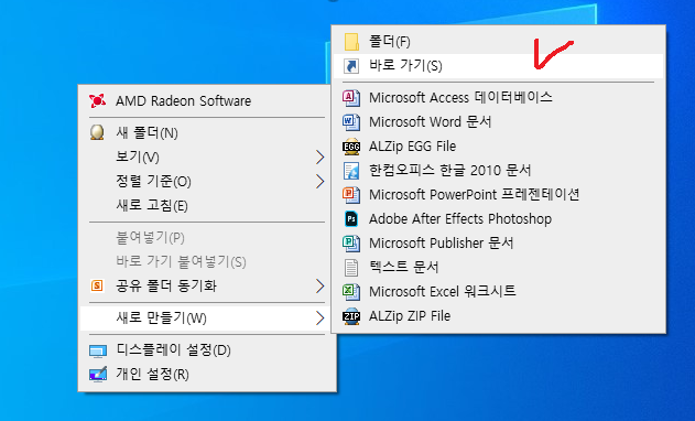 "새로 만들기" - "바로 가기"에 들어가도록 합니다.