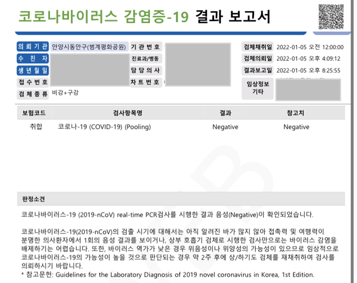 검사는 11시에 했지만, 채취일은 1시간이 늦게 잡혀있네요.