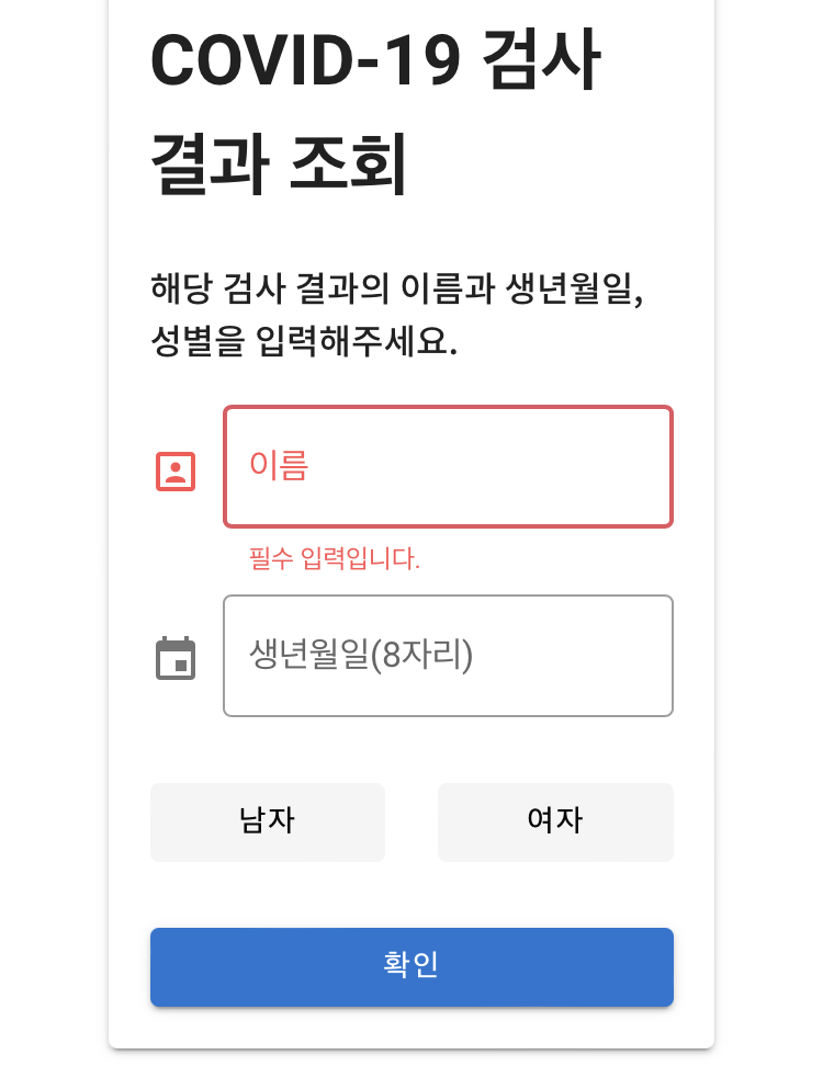 | 이름 생년월일 성별 ㄴ 3개를 입력하고 확인을 누릅니다. |