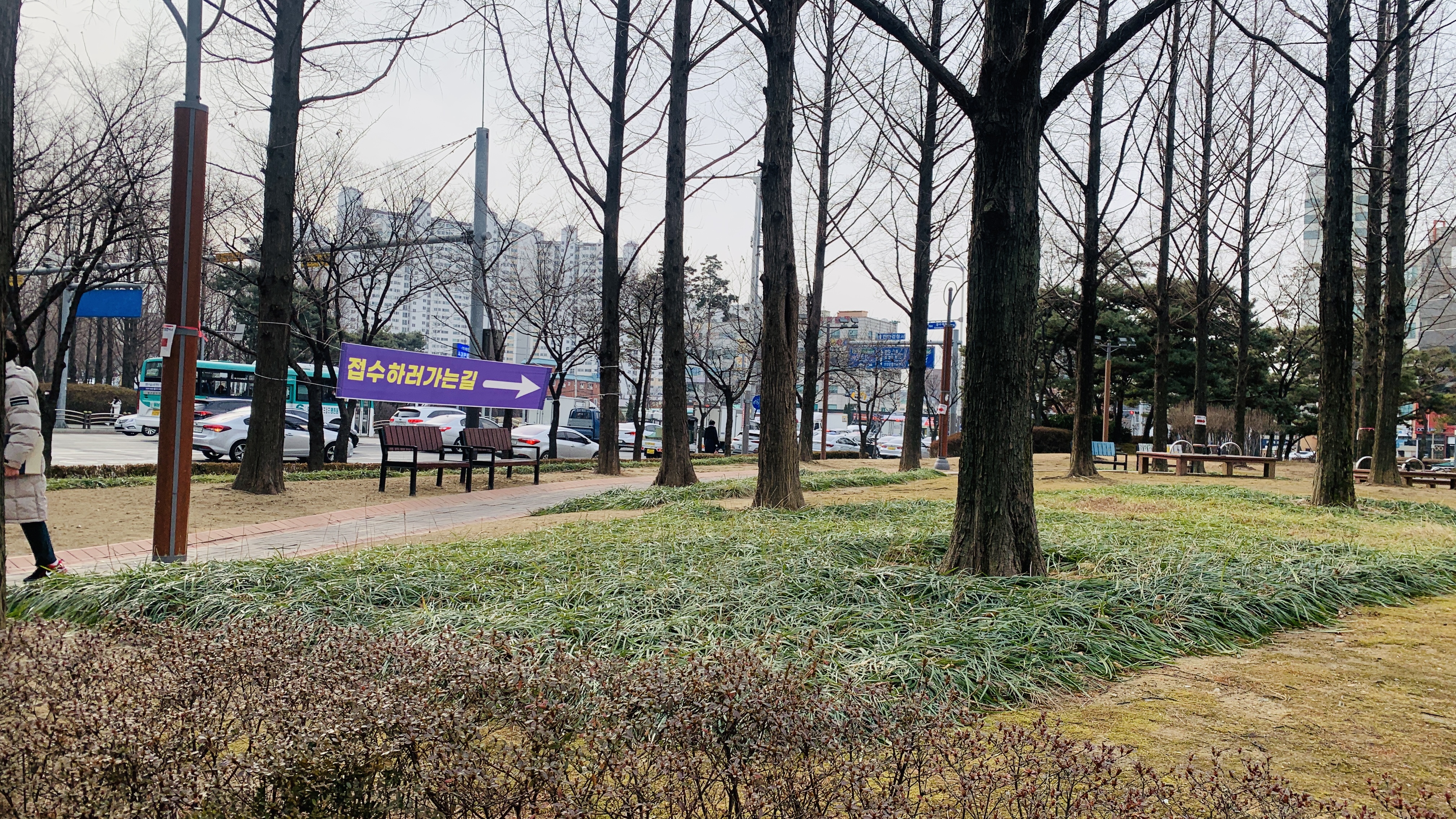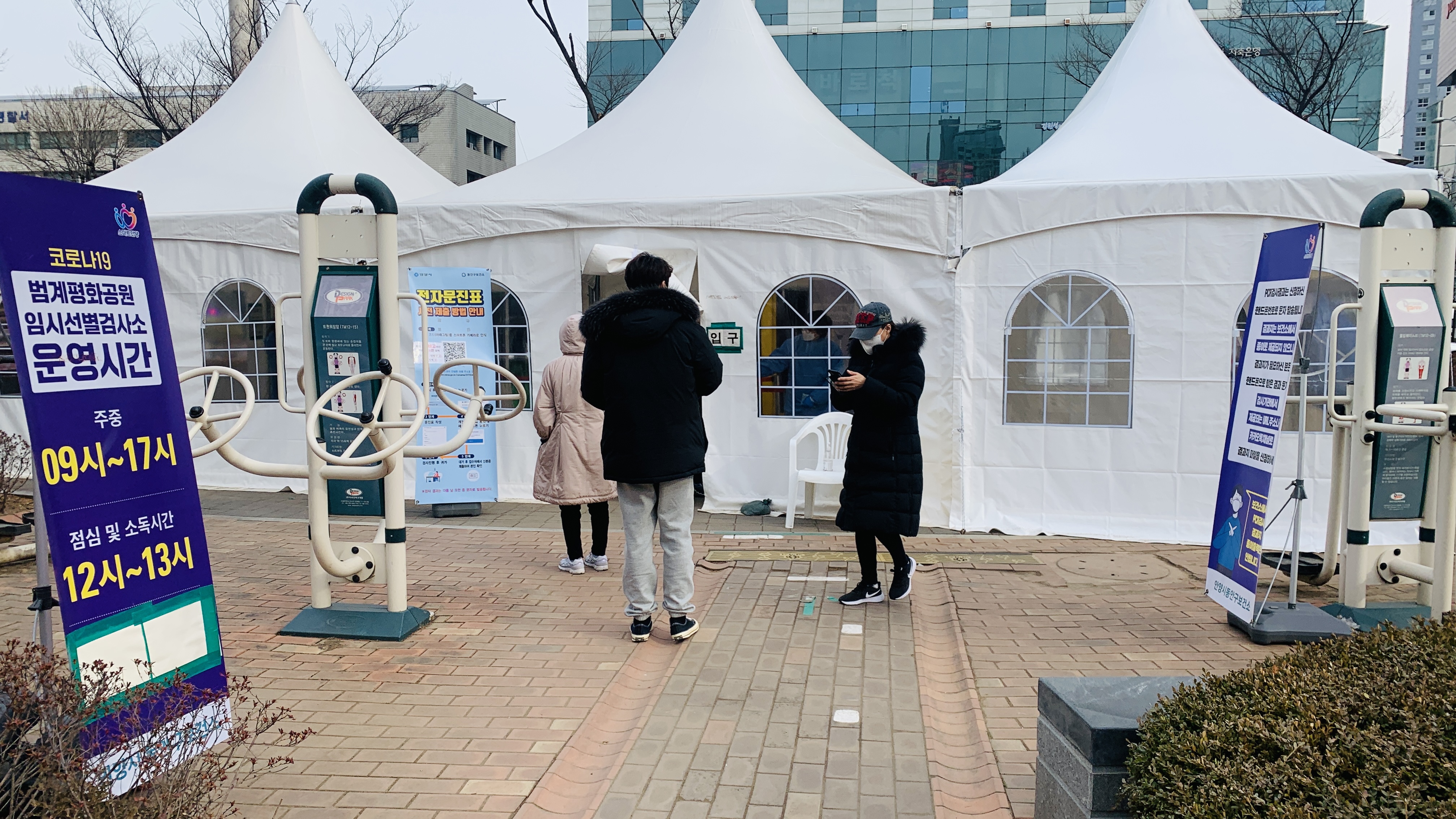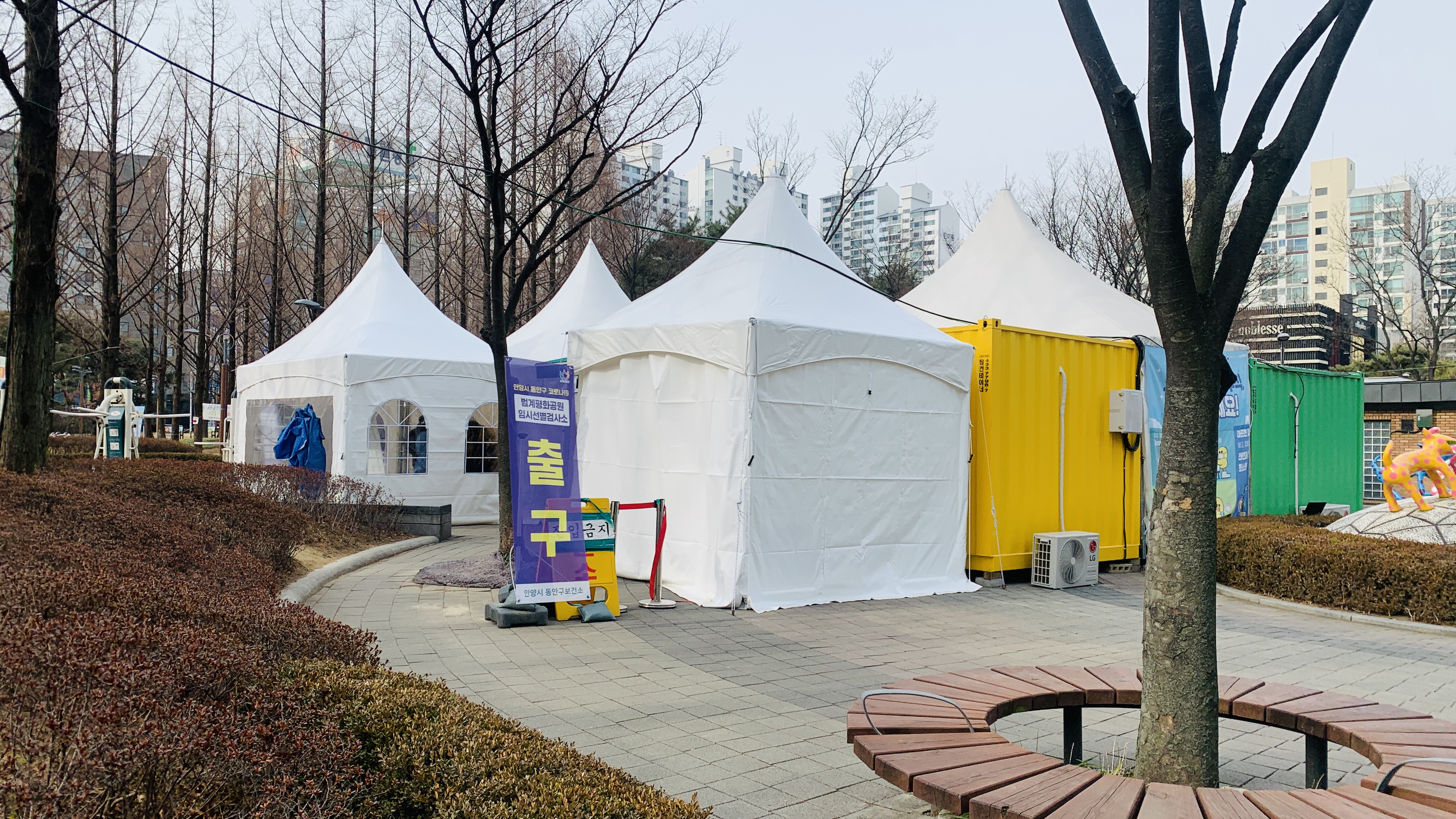 <범계평화공원>에 임시 선별진료소가 생겨서 가까이에서 검사를 받을 수 있었습니다.