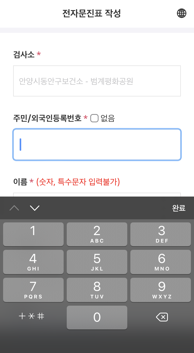아무튼 개인정보와 함께 증상을 체크하면 끝!