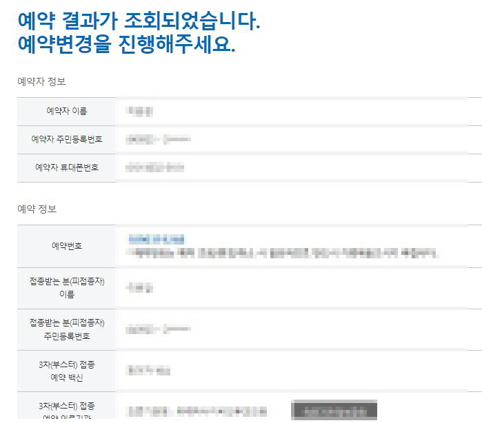 정상적으로 예약내용이 조회가 되면 본인의 내역을 조회할 수 있고,