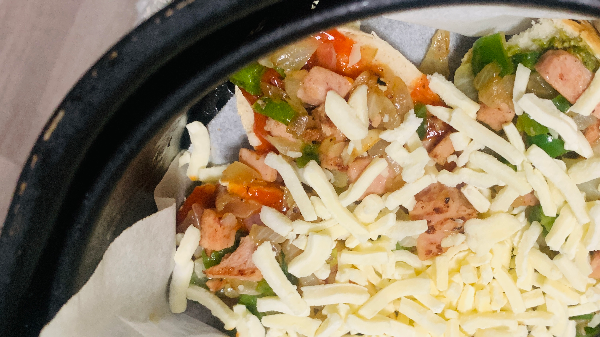 피자치즈를 올린 후 돌려주면 끝!!