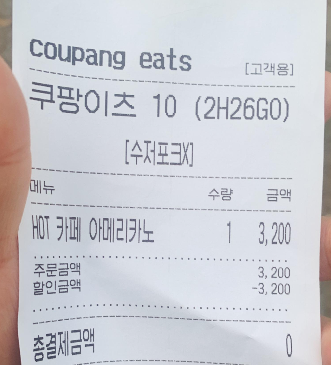 쿠팡이츠라고 말했더니 바로 건네주었습니다.