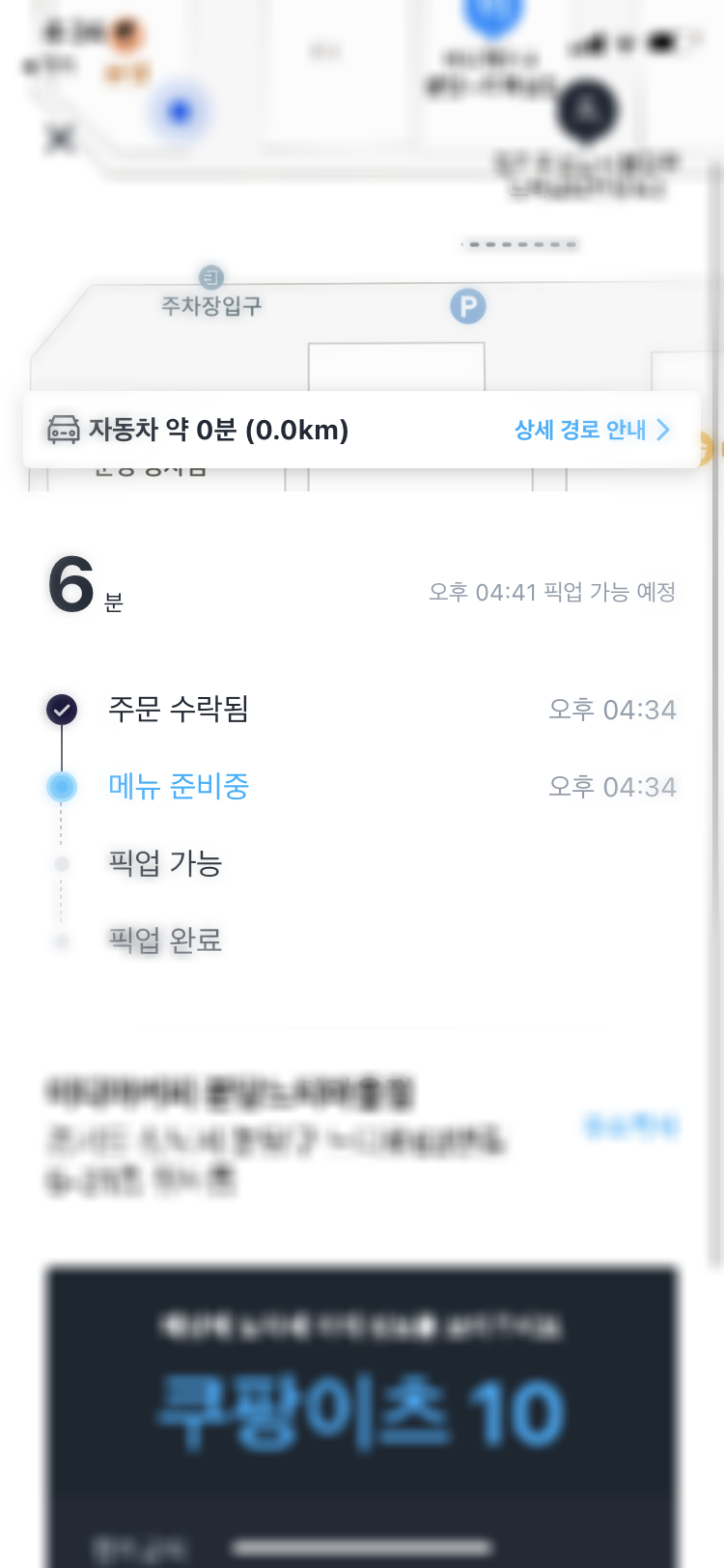 6분 후에 픽업하라는 화면이 뜨면서,