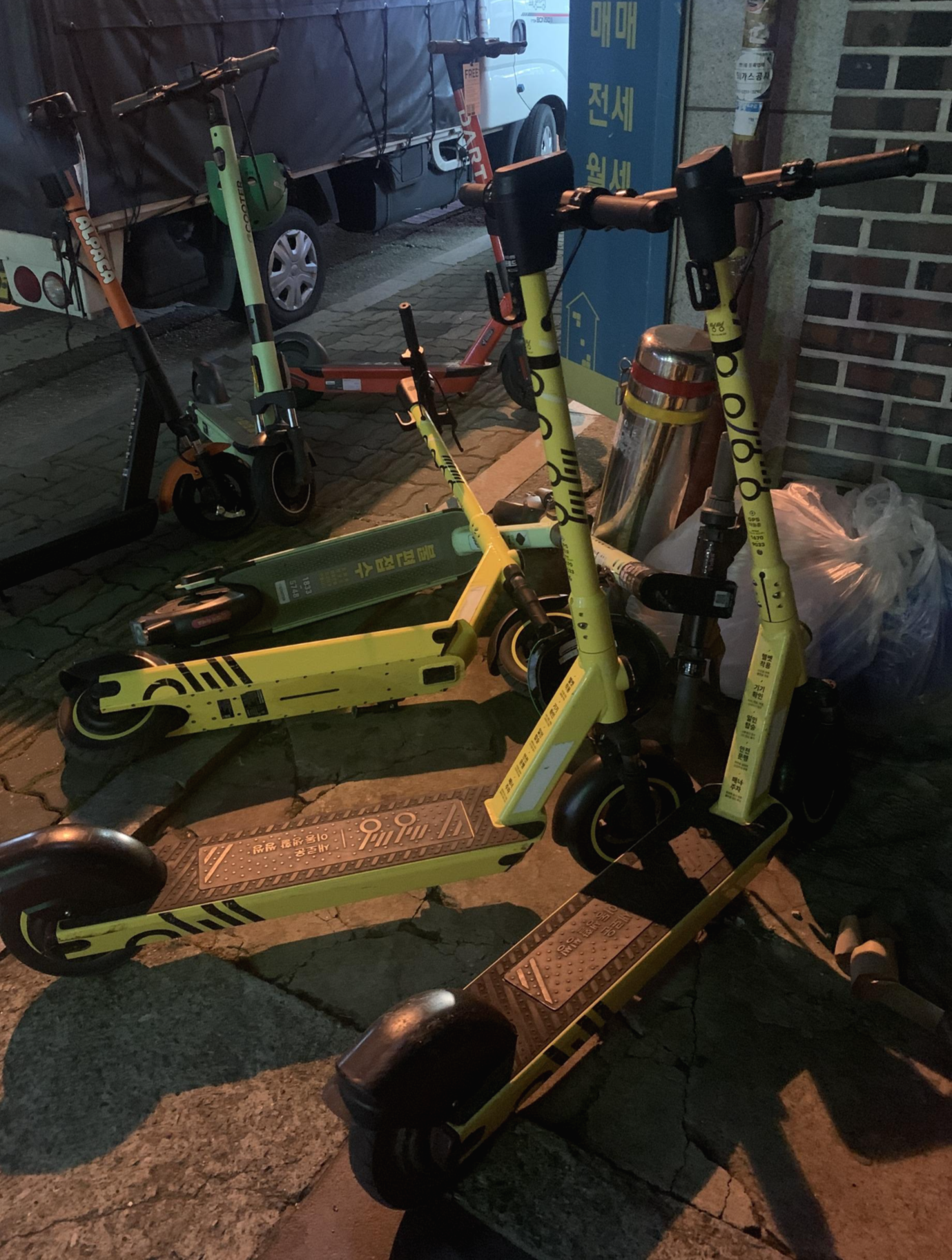 이 놈의 술집 때문인지 사람들이 킥보드를 버려두고 갑니다.