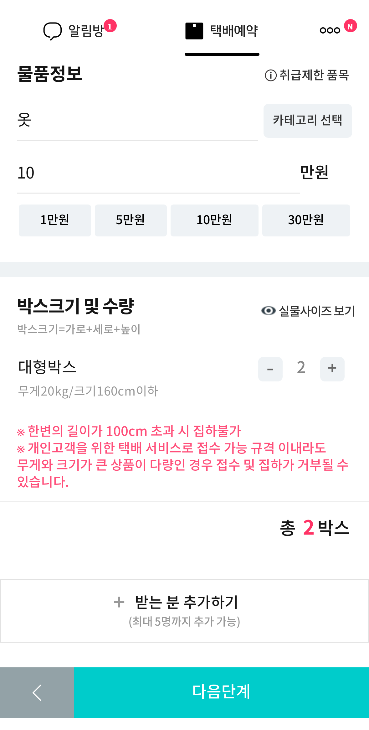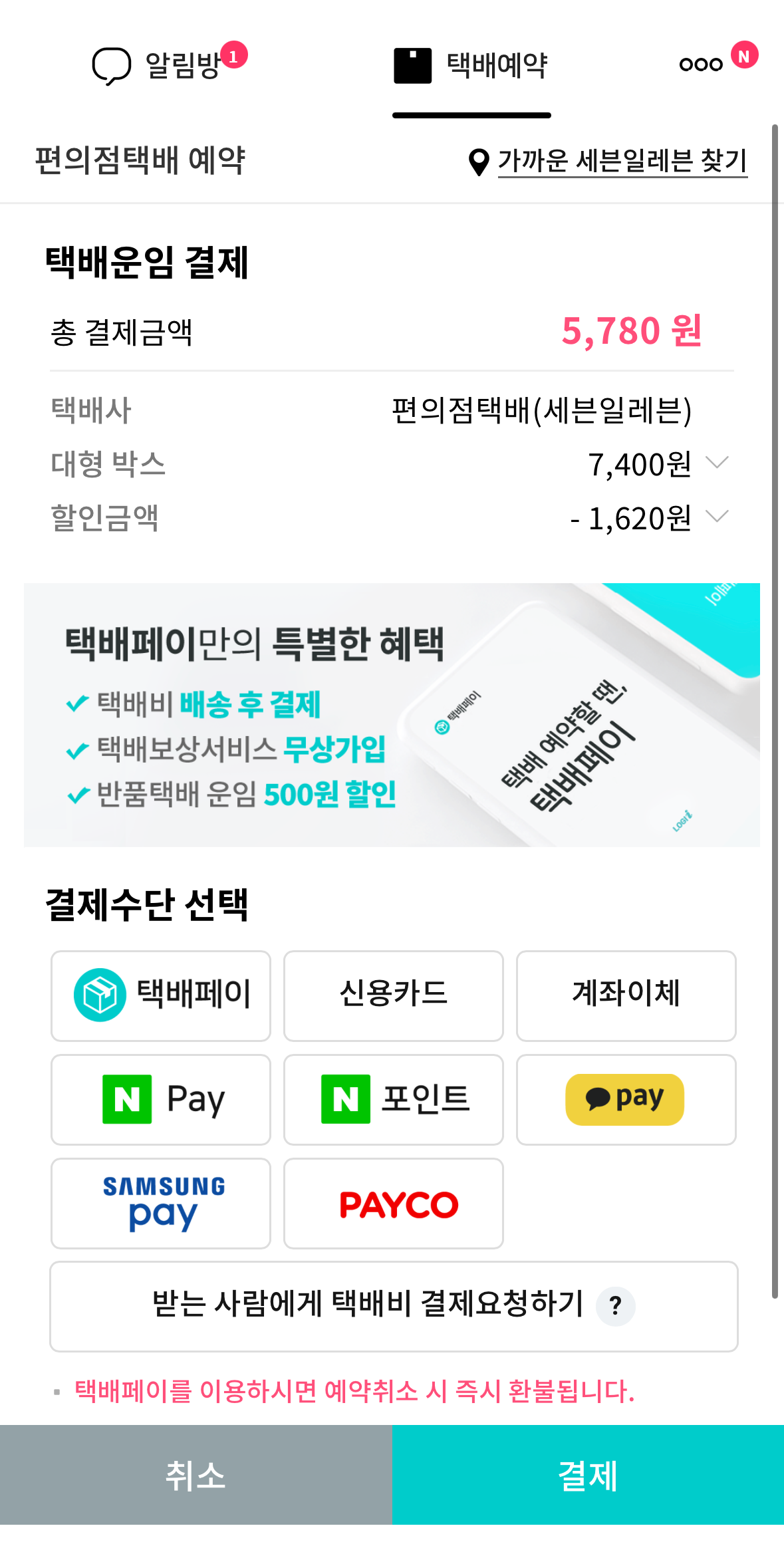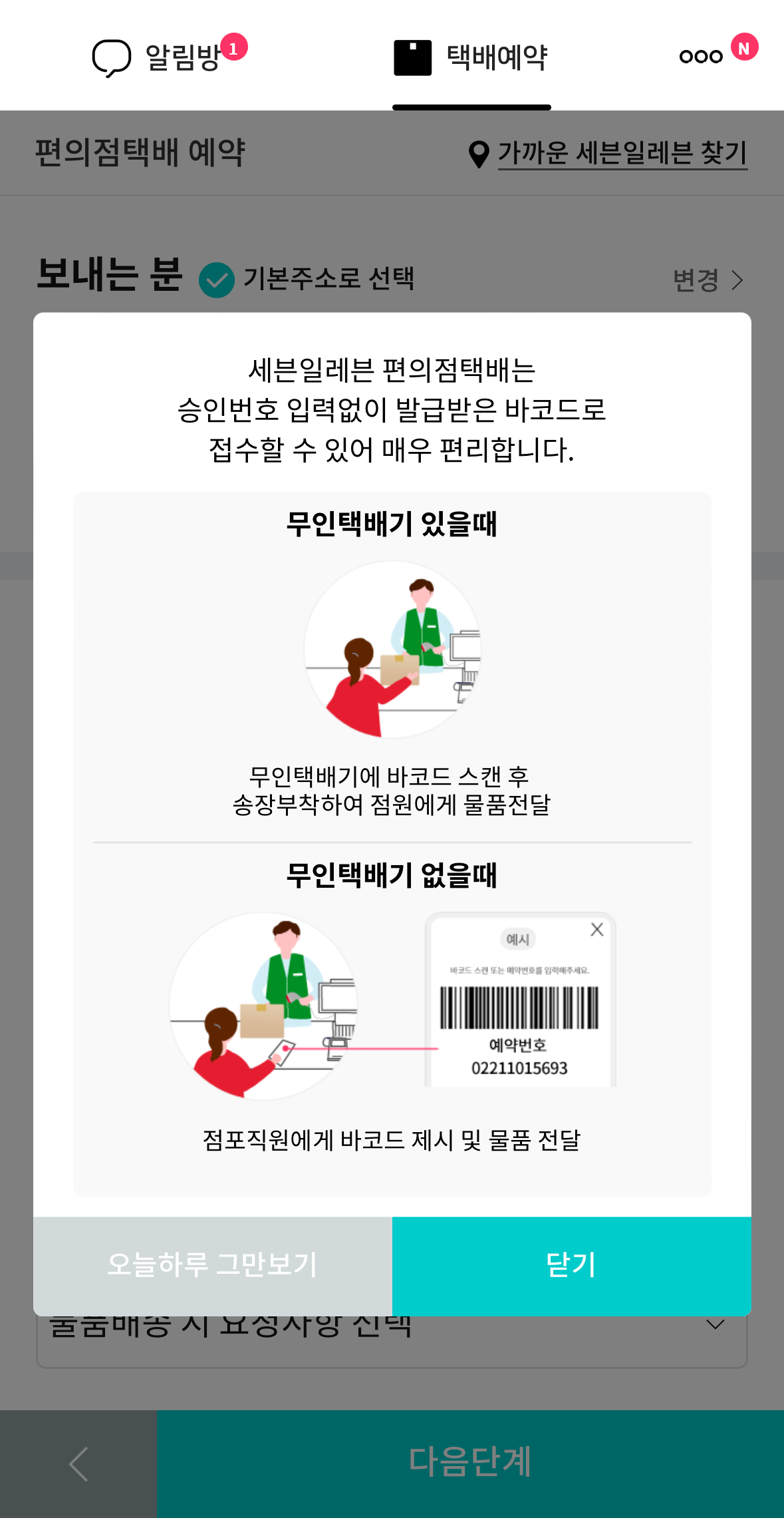 여기에 <택배예약>이라는 기능이 있더라고요.
