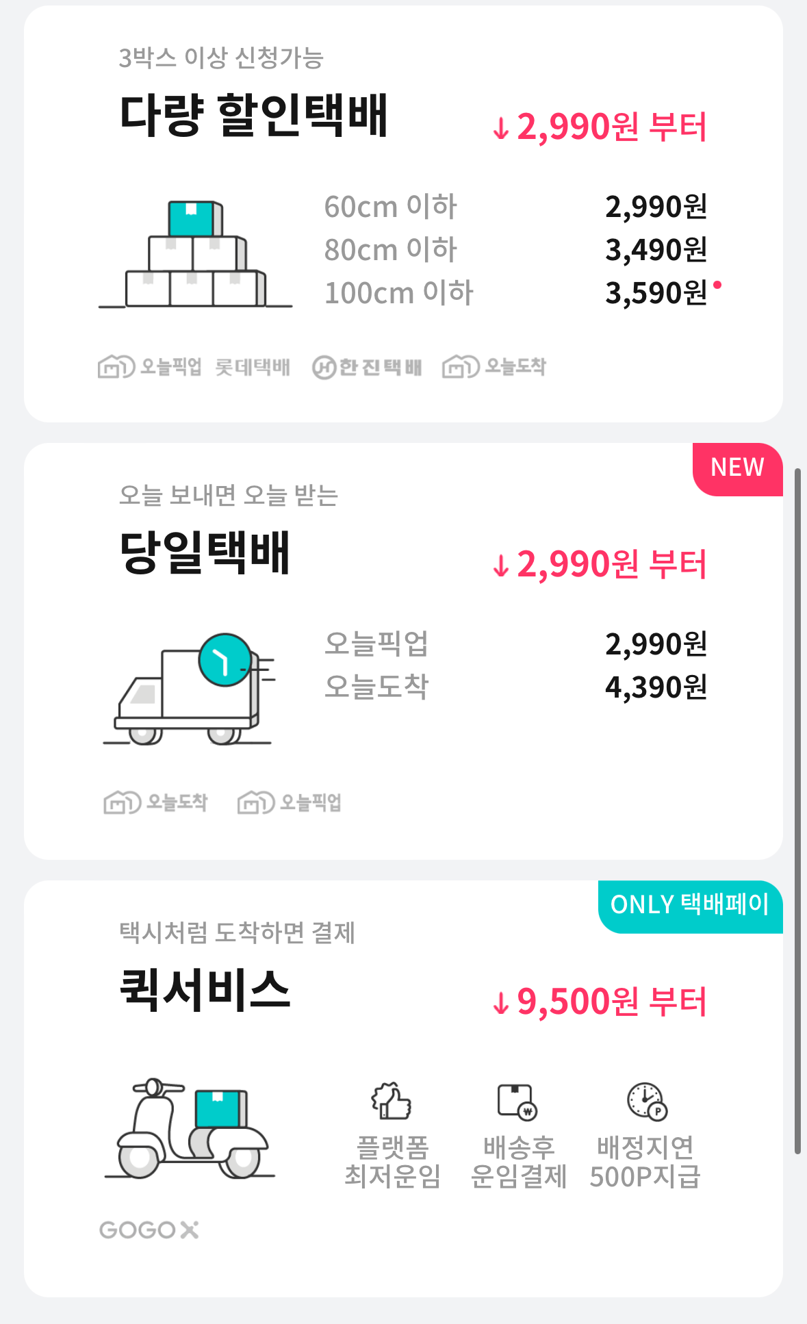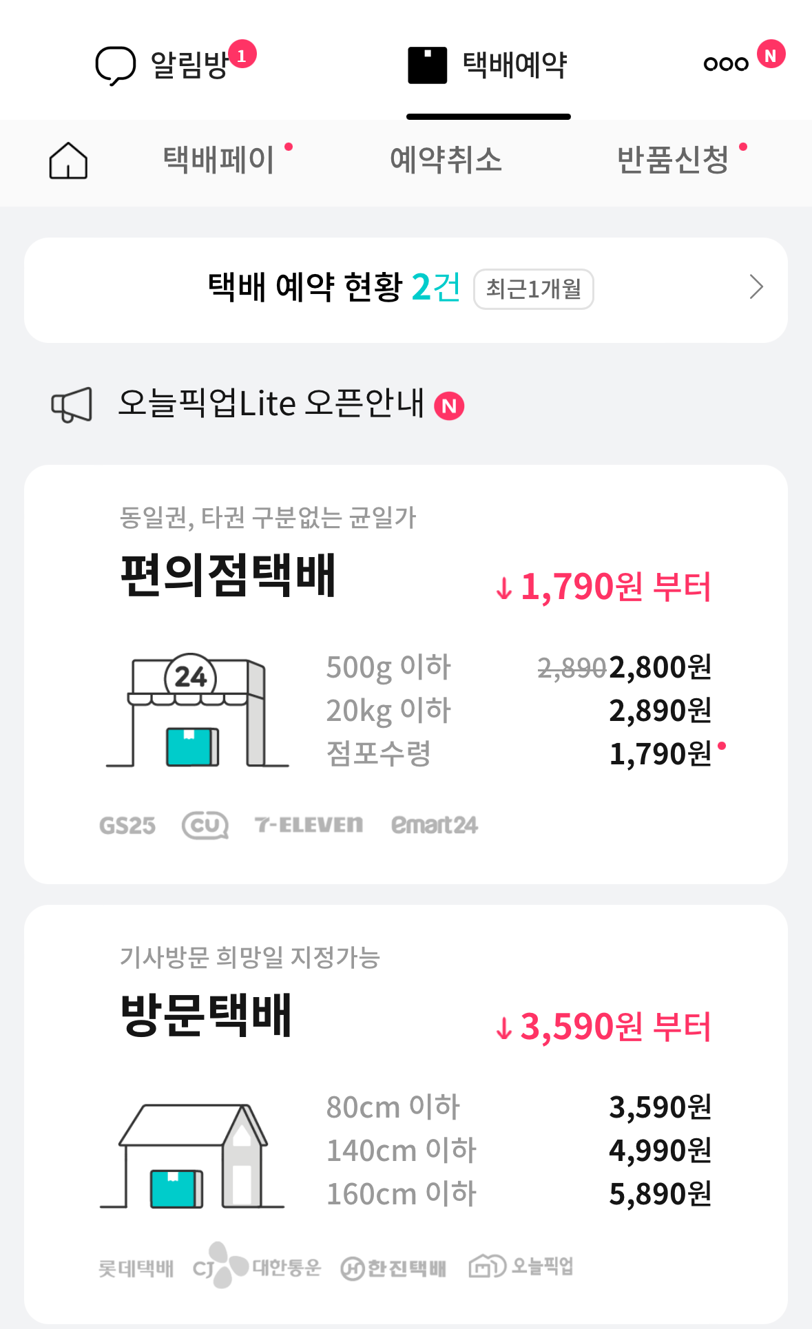 편의점 택배, 방문 택배, 다량할인택배...