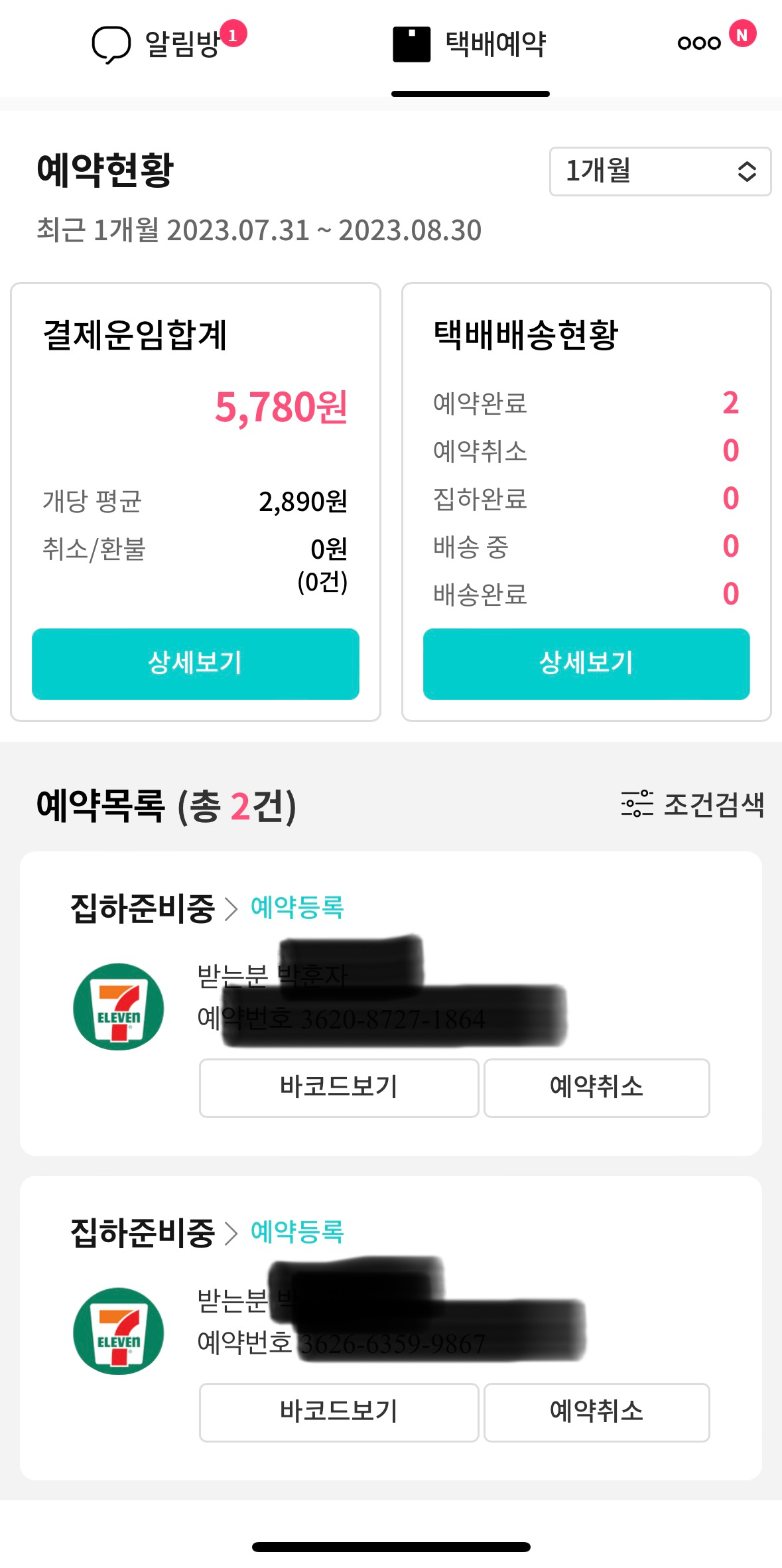 전에 택배를 예약했었는데