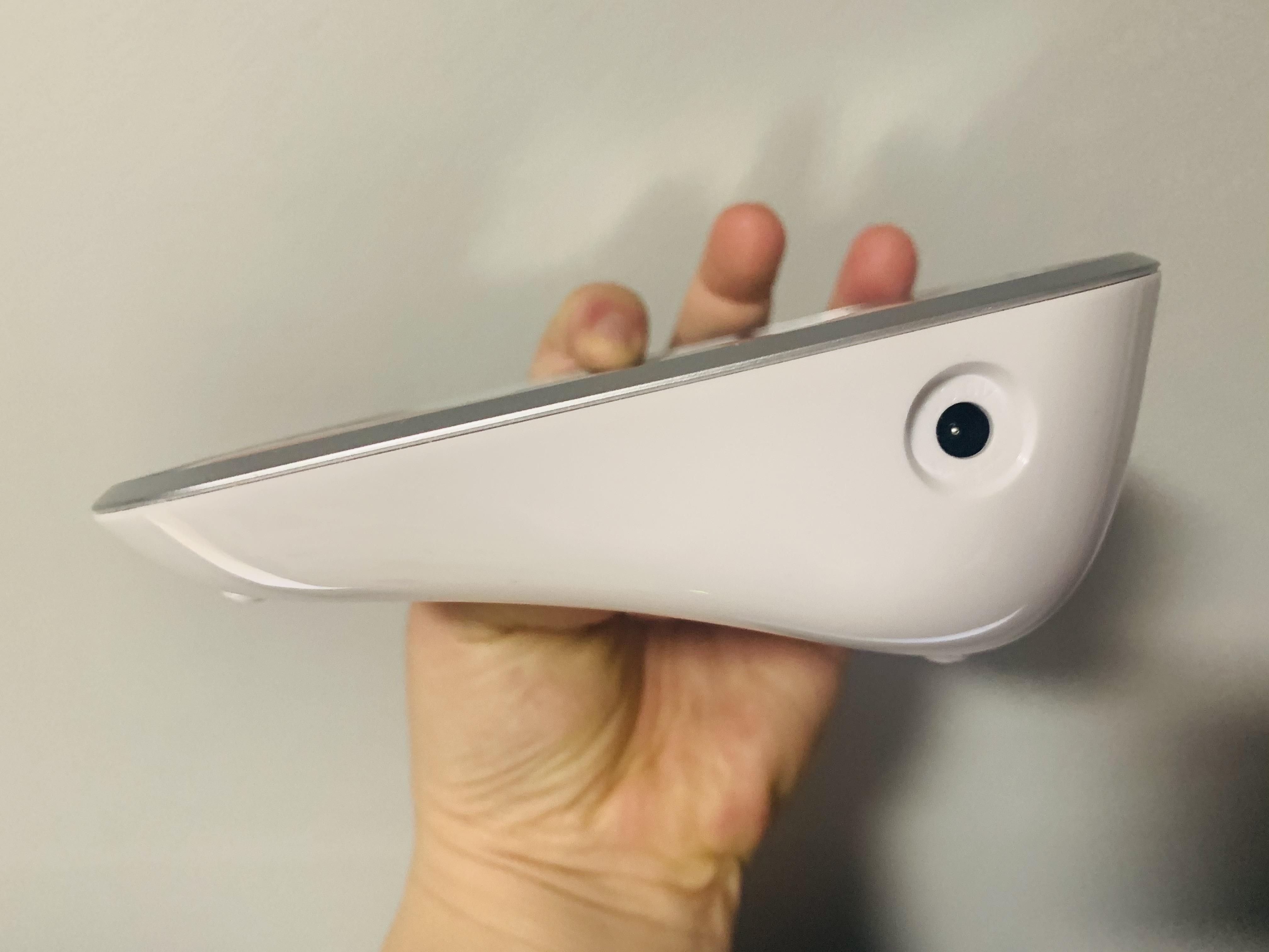 본체의 오른쪽은 별매하는 충전 어댑터를 연결하도록 되어 있습니다.